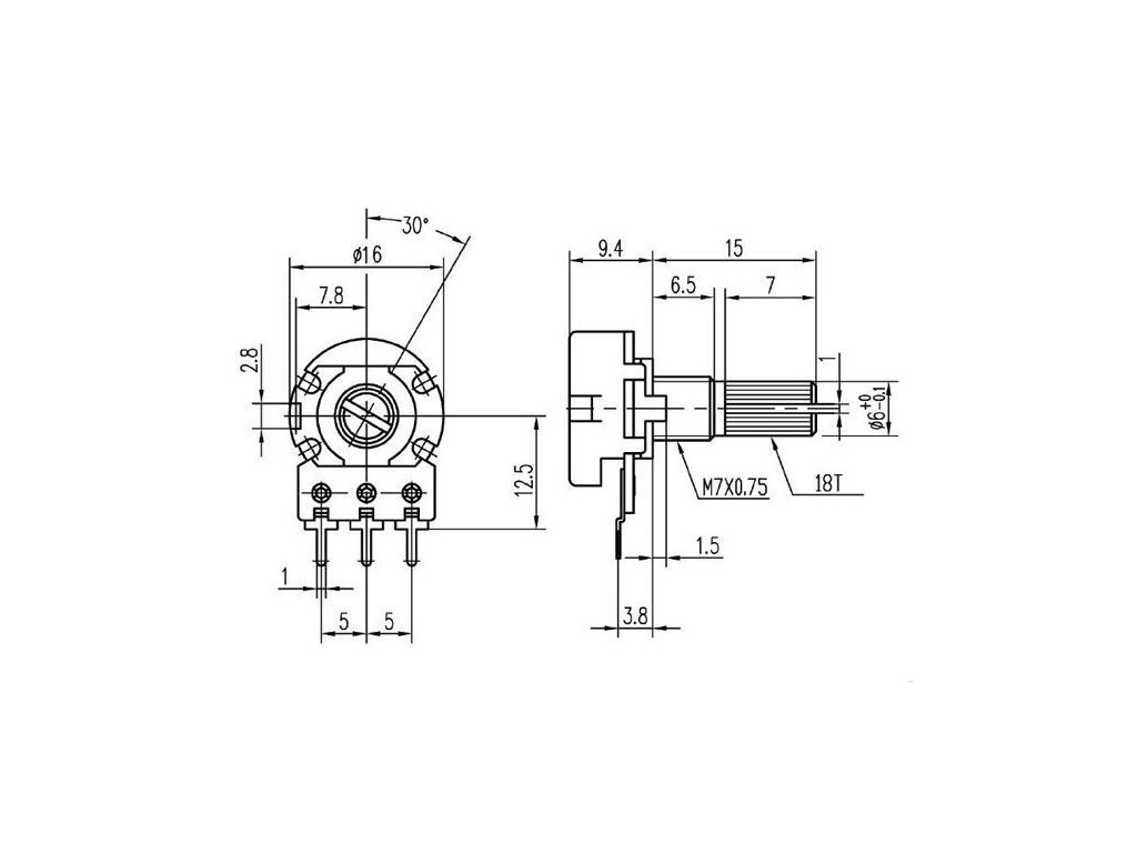50k/N, 16K1, hřídel 6x15mm, potenciometr otočnýDoplňkové parametry