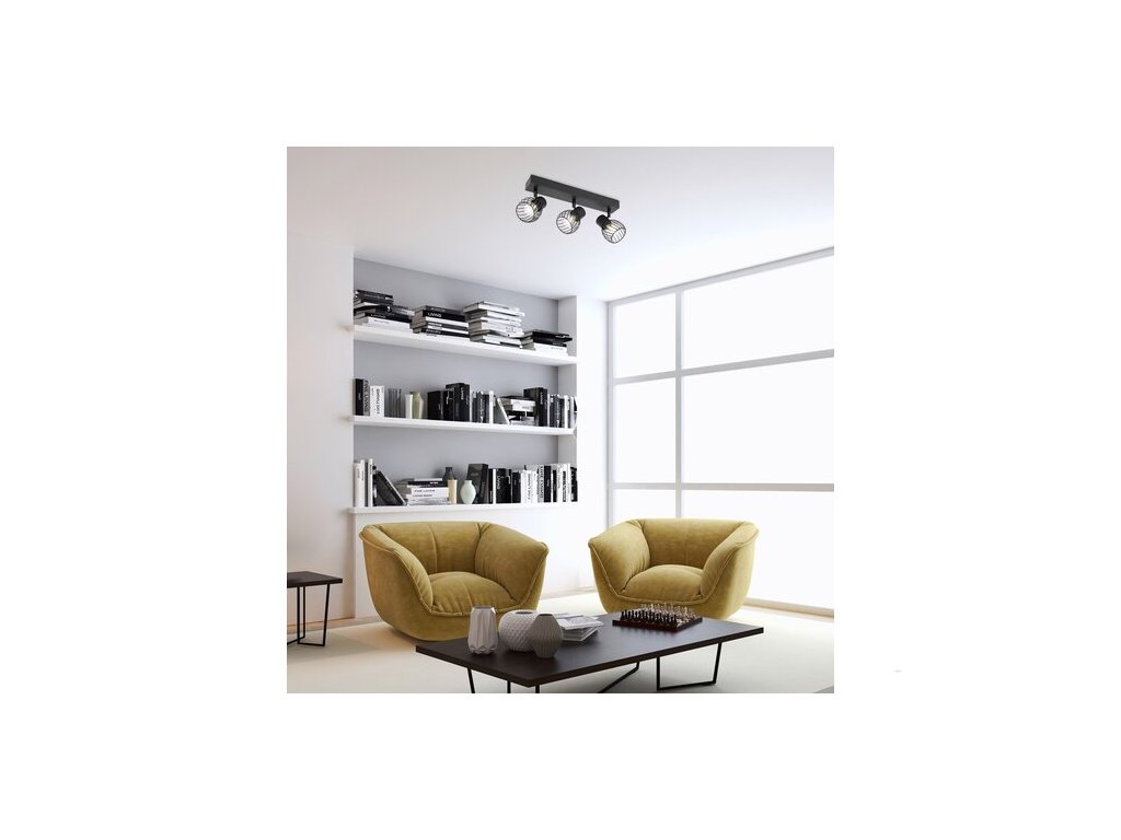 Čtyřdílné stropní bodové svítidlo Aberama v industriálním stylu se doporučuje především do obývacího pokoje nebo ložnice. Model vyrobený z kombinace plastu a kovu, černé barvy, je doplněn kulovitými stínítky s otevřenou mřížkou ve spodní části a lze jej připevnit ke stropu pomocí obdélníkové dekorativní základny. Díky pohyblivým hlavám svítidla umístěným v řadě vedle sebe můžete světlo svítidla nasměrovat jak chcete. Aberama lze použít se čtyřmi světelnými zdroji, každý s výkonem do 10 W, objímka typu E14. Pokud chceme stropní svítidlo použít v ložnici, doporučujeme jej provozovat se zdroji teplého bílého světla, které napomáhají navození intimní, domácké atmosféry. Rozměry čtyřbodového svítidla Aberama: šířka 410 mm, výška 135 mm, průměr žárovek 85 mm, vzdálenost svítidla od stropu 145 mm. Tento model je dodáván bez světelných zdrojů.