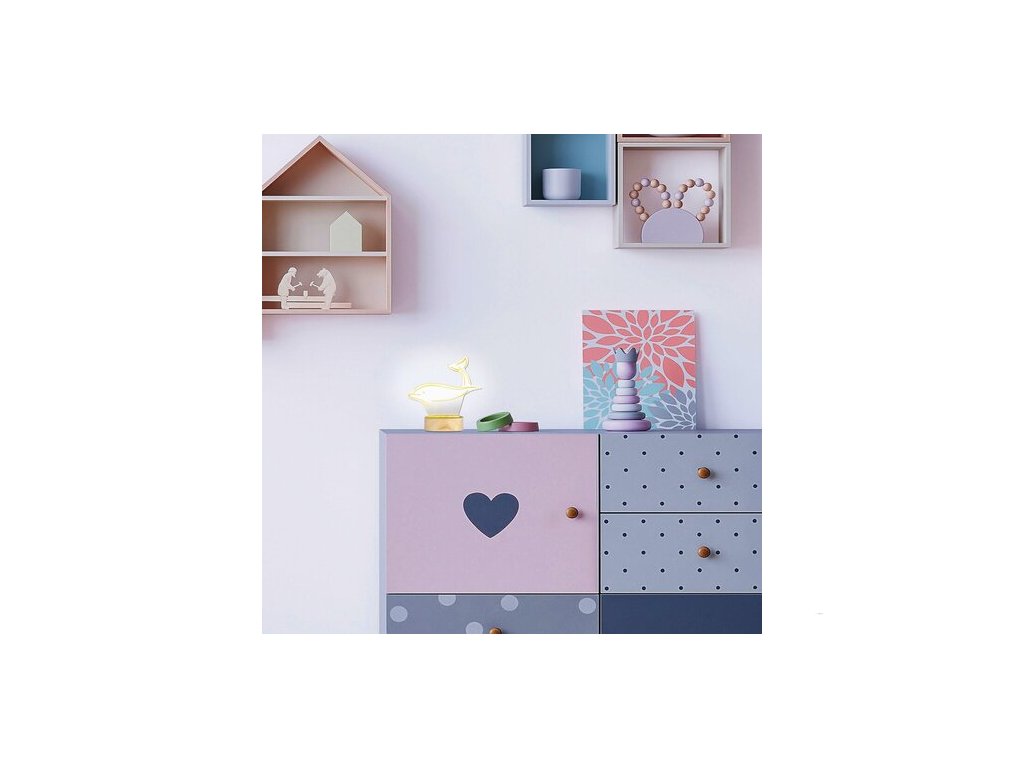 Vlastní designový model Rábaluxu, dekorativní lampa Akali, může být krásným, zábavným kouskem nábytku do dětského pokoje, který jistě potěší chlapce i dívky. Dřevěná dekorační základna v barvě buku drží lampu s průhledným akrylovým stínítkem ve tvaru delfína. Co může být před usnutím příjemnější než představa, že po mořských vlnách letíme na zádech skutečného delfína, abychom brzy dorazili do Země snů? Akali má zabudovaný LED světelný zdroj o výkonu 2 W, svítivostí 50 lumenů se stínítkem, 230 lumenů bez stínítka a životností 36 000 hodin. Teplota barvy lampy je 3000 K, takže vyzařuje teplé bílé světlo, které několik minut před usnutím vytváří uklidňující, příjemnou atmosféru. Šířka dekoračního svítidla je 190 mm, výška 205 mm, délka kabelu 1400 mm.
