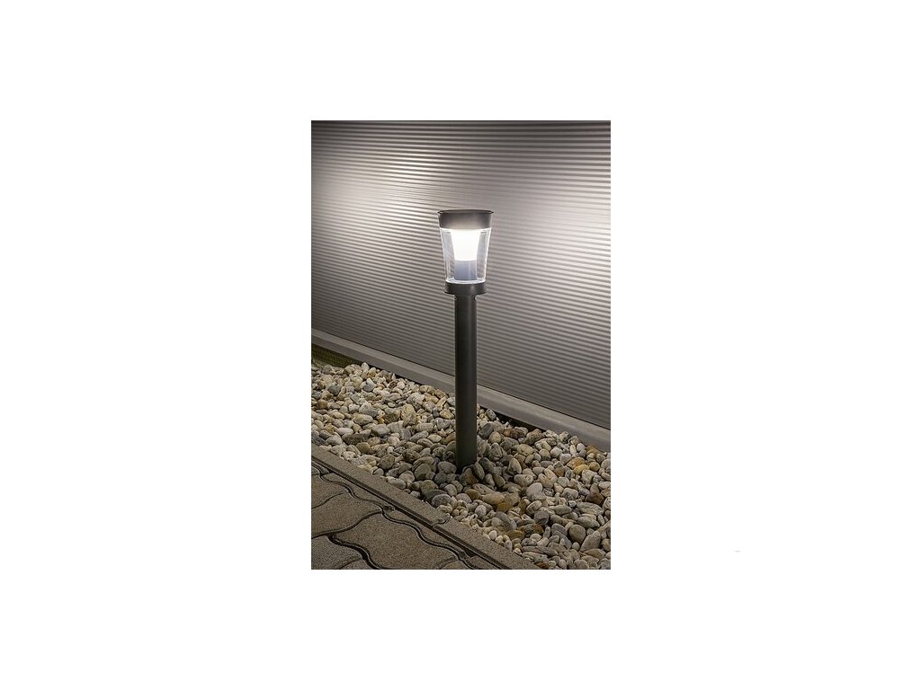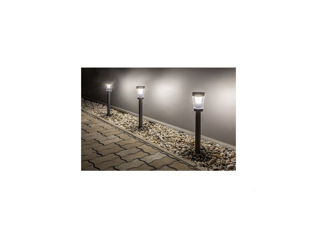 Solární venkovní stojací lampa Angers v moderním stylu se doporučuje především na terasu nebo do zahrady. Válcovité svítidlo s průhledným stínítkem, které se rozšiřuje směrem nahoru, je vybaveno světelným senzorem, tzn. j. upravuje jas svítidla podle podmínek. Tento šedý model je vyroben výlučně z plastu a má plochý kulatý dekorativní podstavec s hlavou lampy umístěnou na válcové noze. Angers má zabudovaný LED světelný zdroj, s výkonem 3 W, svítivostí 300 lumenů se stínítkem a 450 lumenů bez stínítka, a životností 15 000 hodin. Světelný zdroj s barevnou teplotou 4000 K vyzařuje přirozené bílé světlo. Baterie lampy má napětí 3,7 V a kapacitu 2000 mAh. Angers má rozměry: výška 630 mm, průměr 120 mm, instalační průměr 100 mm. Venkovní svítidlo má stupeň krytí IP65, což znamená, že je zcela uzavřeno a chráněno proti pevným částicím a nečistotám, jakož i proti nízkotlakým proudům vody. Ideální rozsah pracovních teplot –je –10–40 °C.