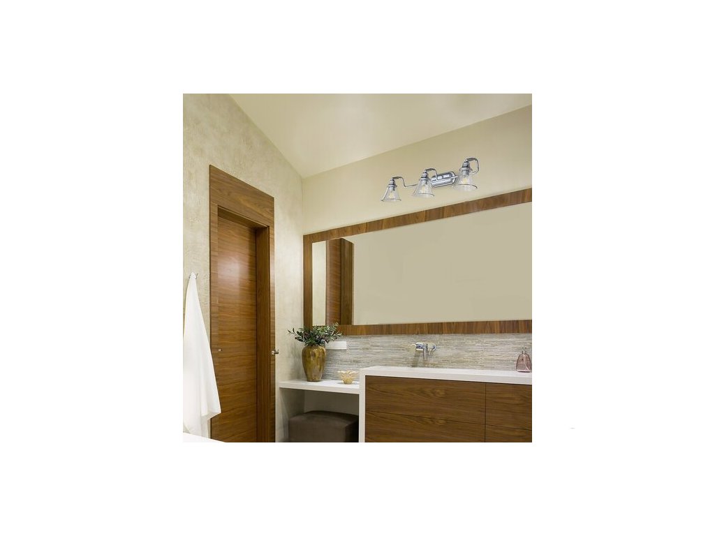 Koupelnové nástěnné svítidlo Antoine s 3 žárovkami v klasickém stylu doporučujeme těm, kdo hledají elegantní doplněk k zařízení své koupelny. Tento model lze umístit v blízkosti umyvadla nebo vany, kde poskytuje atmosférické osvětlení pro váš večerní rituál před spaním. Kovové svítidlo chromové barvy je doplněno o průhledné skleněné stínítka ve tvaru zvonku. Svítidlo Antoine lze upevnit na stěnu pomocí podlouhlého zaobleného dekorativního podstavce a lze jej používat se třemi žárovkami o výkonu každé až 40W. Typ patice je E14. Krytí IP44 tohoto svítidla zajišťuje jeho ochranu proti vniknutí předmětů do průměru 1 mm a proti stříkající vodě z jakéhokoli směru. Rozměry tohoto nástěnného svítidla s 3 žárovkami jsou následující: šířka 650 mm, výška 140 mm, vzdálenost od stěny 180 mm. Tento model je dodáván bez světelného zdroje.