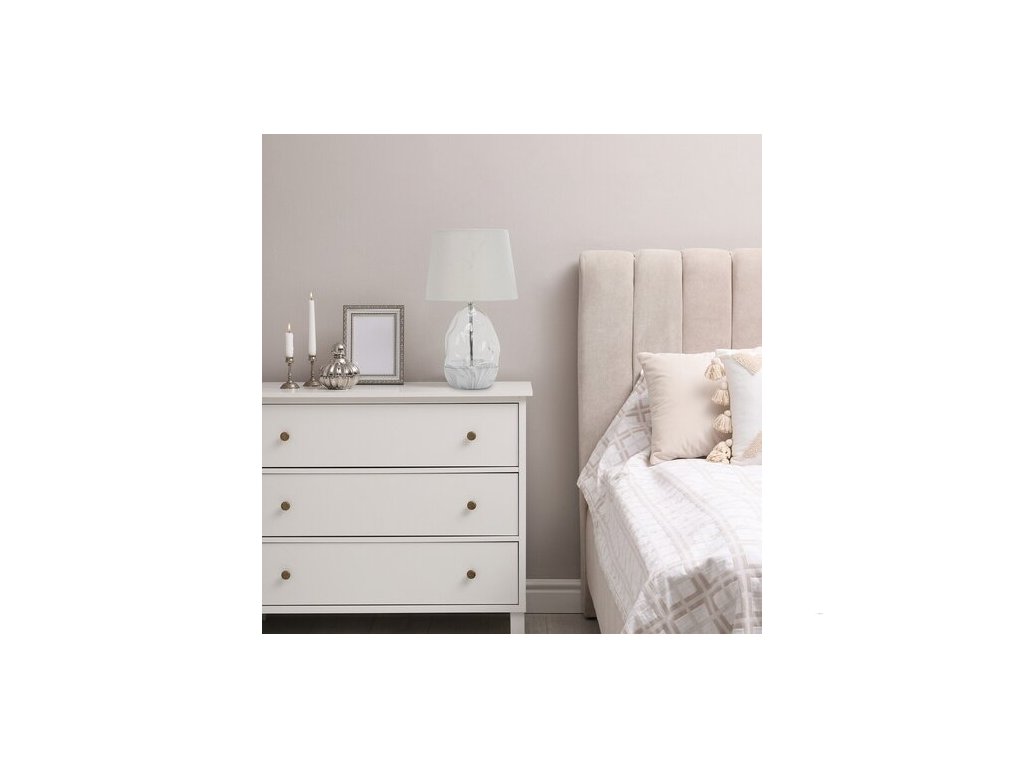 Stolní lampu Rabalux Apolonia doporučujeme všem, kteří hledají speciální, poutavou doplňkovou lampu. Tato designová lampa má konstrukci vyrobenou z průhledného skla a bílé keramiky a bílé textilní stínítko. Stínítko se směrem dolů mírně rozšiřuje a jeho světlá barva světlo žárovky příjemně tlumí, ale zároveň příliš nezastiňuje. Stolní lampa je ideální volbou do obývacího pokoje nebo ložnice, kde slouží také jako dekorativní prvek. Podle vašeho vkusu si můžete vybrat žárovku vyzařující teplé nebo přirozené bílé světlo. Lampu lze ovládat vypínačem na kabelu a používat s jedním světelným zdrojem o výkonu až 40 W. Typ patice je E27. Stolní lampa je dodávána bez světelného zdroje.