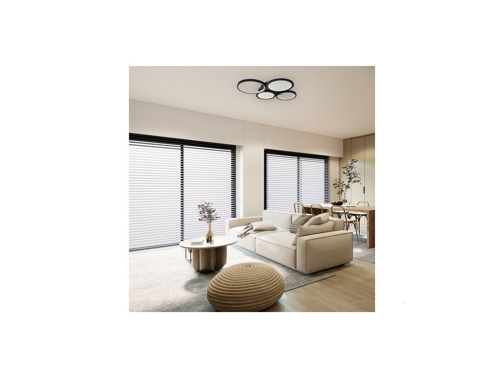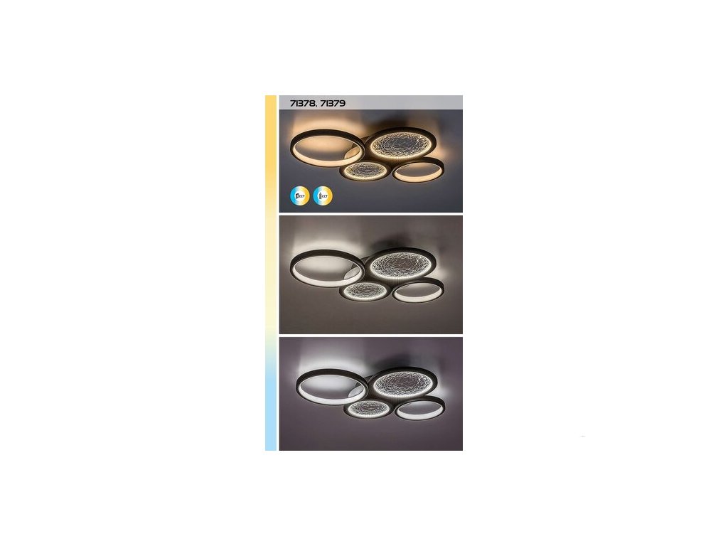 Stropní svítidlo Rabalux Aranis je ideální volbou pro ty, kteří hledají působivé stropní svítidlo s rozsáhlými funkcemi. Tento model se skládá z kulatých tvarů různých velikostí, přičemž dva z nich mají uvnitř zajímavou texturu připomínající povrch Měsíce. Tělo svítidla je vyrobeno z kovu v černé barvě a doplněno bílým plastovým stínidlem. Dekorativní základna, kterou se svítidlo připevňuje ke stropu, má tvar disku.Svítidlo obsahuje vestavěný LED světelný zdroj, jehož teplotu barvy lze upravovat dálkovým ovládáním nebo nástěnným vypínačem. Nastavit lze také jas a kromě toho lze využít funkce paměti, časovače a nočního světla – vše ovládané pomocí dálkového ovladače. Svítidlo je primárně doporučeno do obývacího pokoje, jídelny nebo ložnice.