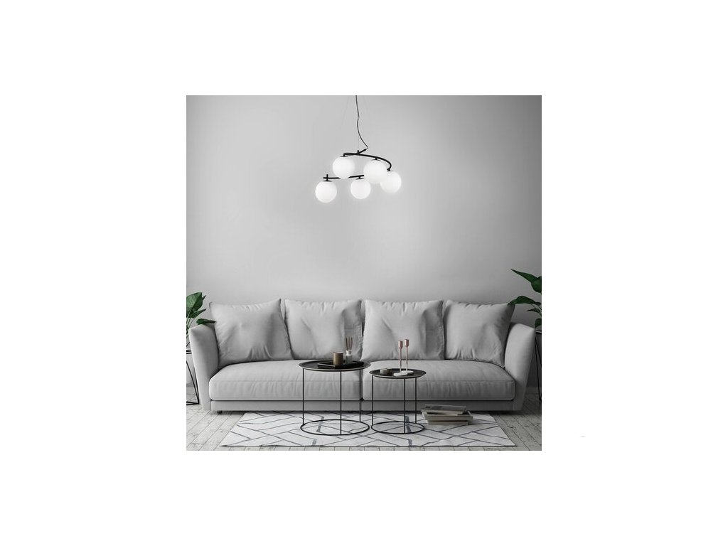 Závěsné svítidlo Aslan s 5 žárovkami, které představuje průmyslový styl, bude úžasným doplňkem vašeho moderního nábytku v obývacím pokoji nebo ložnici. Matné černé svítidlo vyrobené z kovu je doplněno bílými skleněnými stínítky, které visí na půlkruhovém svítidle než pět bílých balónů. Závěsné svítidlo lze připevnit na strop pomocí malého kulatého ozdobného podstavce. Díky sférickým stínídlům tento model rozptyluje světlo volně do všech stran a zajišťuje tak útulné osvětlení místnosti. Svítidlo Aslan může být použito s pěti žárovkami, každá s výkonem až 5W, pětice je E14. Pokud chcete vylepšit intimní domácí atmosféru, vyberte si pro toto svítidlo teplé bílé světelné zdroje. Rozměry závěsného svítidla Aslan jsou následující: průměr 560 mm, vzdálenost od stropu 1200 mm, instalační průměr 120 mm. Tento model se dodává bez světelných zdrojů.