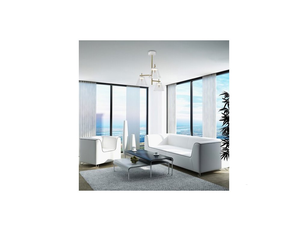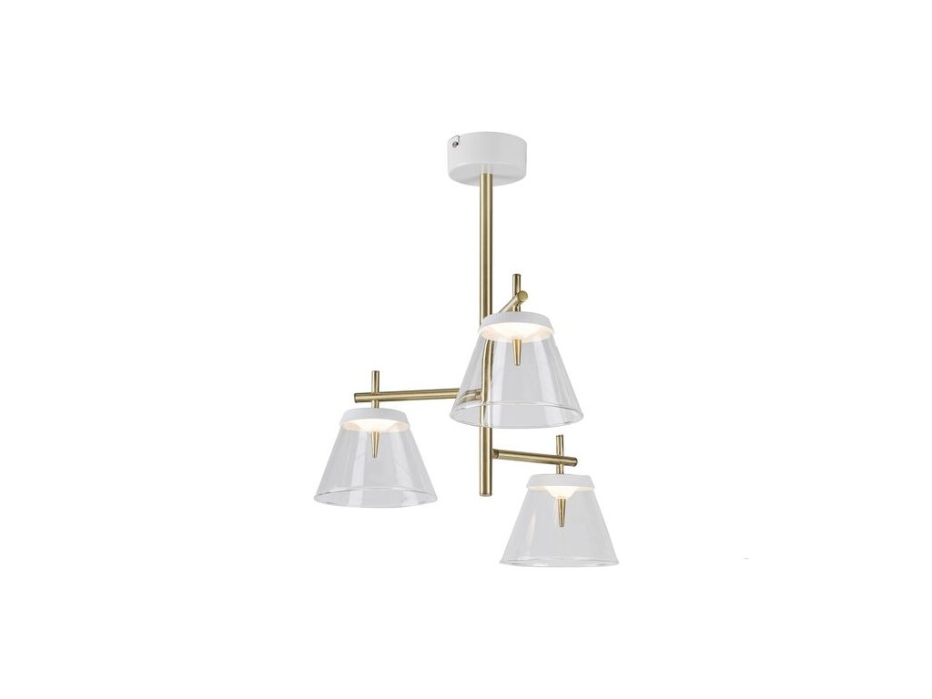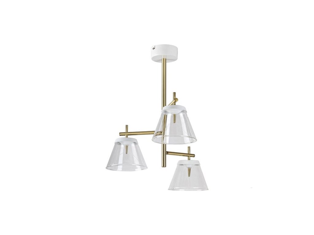 Moderní trojité závěsné svítidlo Aviana z kombinace kovu a skla doporučujeme všem, kteří si rádi vybírají speciální a nápadné doplňky. Úžasné svítidlo Aviana zaručeně přiláká pozornost všech. Doporučujeme ho především do vašeho obývacího pokoje nebo jídelny. Bílé a bronzové kovové svítidlo je doplněno průhlednými stínítky a kulatým bílým dekorativním podstavcem. Svítidlo Aviana vyzařuje přirozené bílé světlo, které vytváří elegantní moderní efekt. Závěsné svítidlo má vestavěné LED světelné zdroje. Mají celkový výkon 18 W, svítivost 1440 lumenů a barevnou teplotu 4000 K. Závěsné svítidlo Aviana má průměr 435 mm a jeho vzdálenost od stropu je 515 mm. Na tento krásný a elegantní model se vztahuje 5letá záruka.