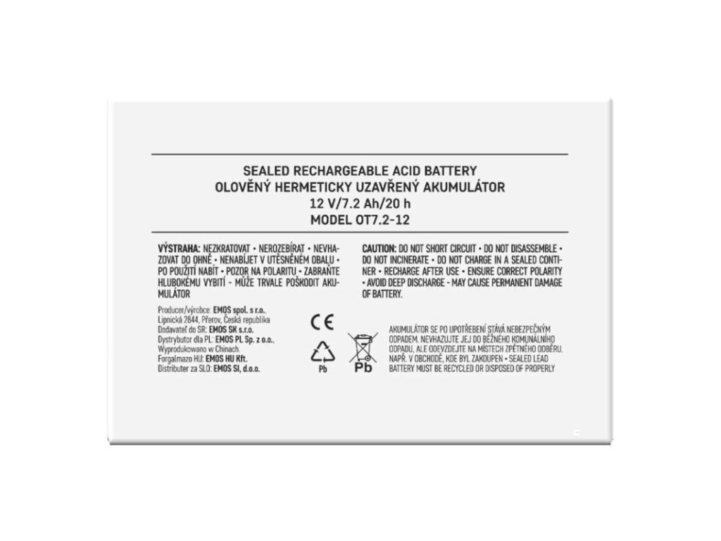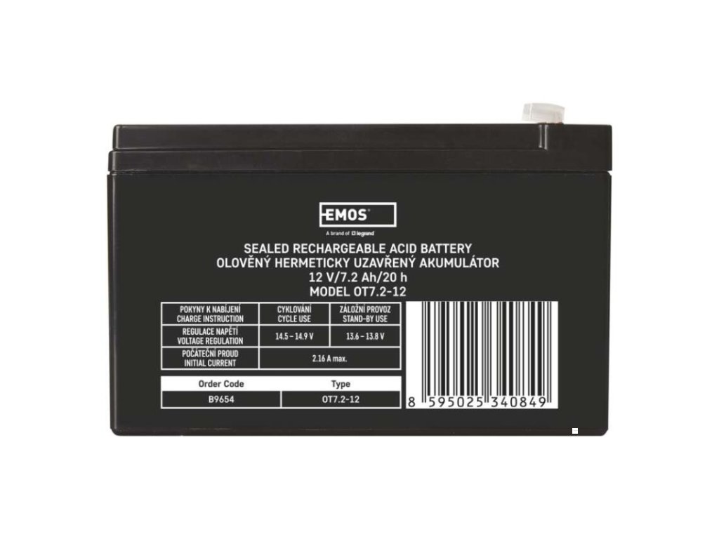 bezúdržbový: ano|chemické složení: Pb|EPS (elektronické požární systémy): ano|EZS (elektronické zabezpečovací systémy): ano|hmotnost: 2,2 kg|kapacita: 7,2 Ah|napětí: 12 V|nouzové osvětlení: ano|optimální životnost: 5 let|PARADOX: ano|prodejní obal: 1 ks|rozměr: 151 × 65 × 94 mm|technologie: AGM|terminál: faston 4,7 mm|UPS (záložní zdroje): ano|ÚSTŘEDNY JABLOTRON JA100K: ne|ÚSTŘEDNY JABLOTRON JA106K: ano|ÚSTŘEDNY JABLOTRON JA106K(R): ne|ÚSTŘEDNY JABLOTRON JA82K: ne|ÚSTŘEDNY JABLOTRON JA83: ano|záložní baterie pro výtahy - osvětlení, hovor: anoDoplňkové parametry