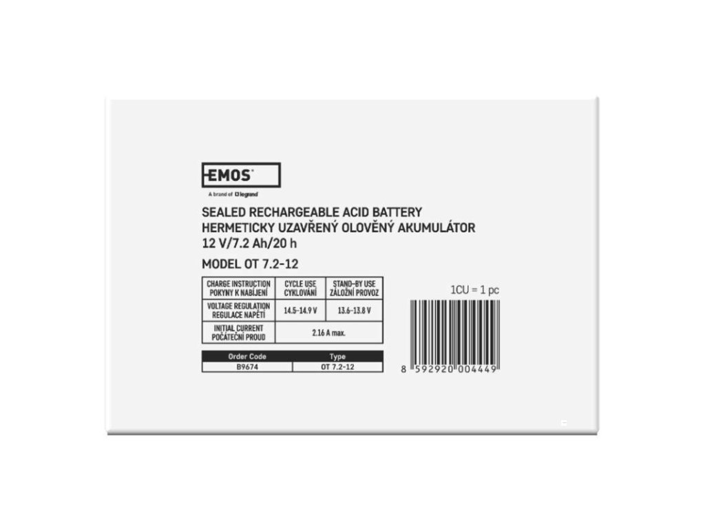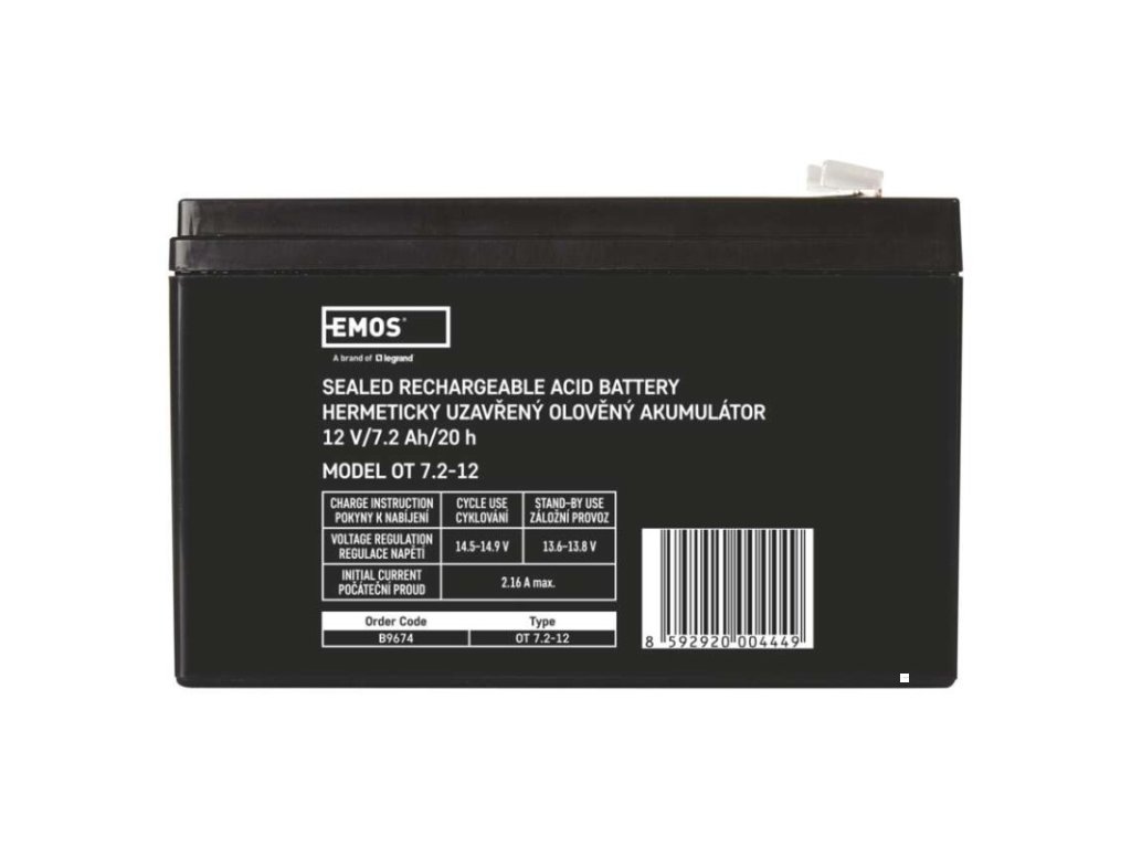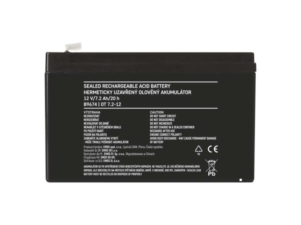bezúdržbový: ano|chemické složení: Pb|EPS (elektronické požární systémy): ne|EZS (elektronické zabezpečovací systémy): ano|hmotnost: 2,2 kg|kapacita: 7,2 Ah|napětí: 12 V|nouzové osvětlení: ne|optimální životnost: 5 let|PARADOX: ne|prodejní obal: 1 ks|rozměr: 151 × 65 × 94 mm|technologie: AGM|terminál: faston 6,3 mm|UPS (záložní zdroje): ano|ÚSTŘEDNY JABLOTRON JA100K: ne|ÚSTŘEDNY JABLOTRON JA106K: ne|ÚSTŘEDNY JABLOTRON JA106K(R): ne|ÚSTŘEDNY JABLOTRON JA82K: ne|ÚSTŘEDNY JABLOTRON JA83: ne|záložní baterie pro výtahy - osvětlení, hovor: neDoplňkové parametry