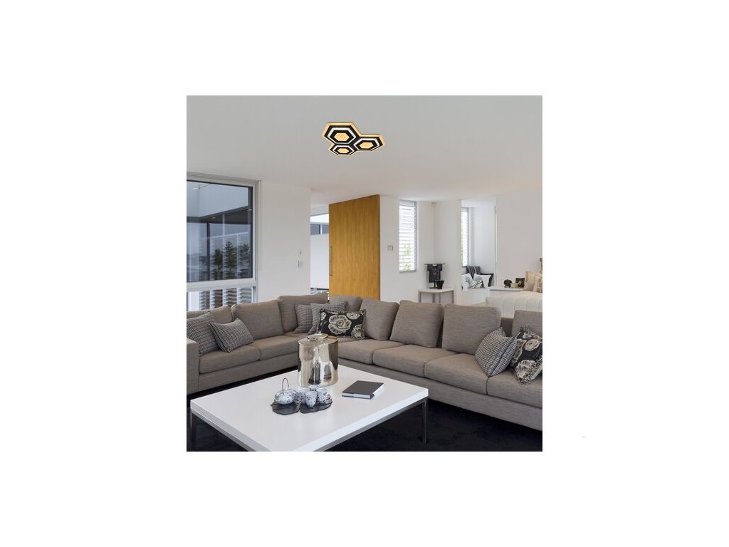 Trojité stropní svítidlo Bitsi s živým, veselým vzhledem je model navržen značkou Rábalux. Svítilnu sestávající ze tří do sebe zapadajících šestihranných prvků doporučujeme do pozornosti těm, kteří hledají model s moderním, vzrušujícím designem a vysokým jasem do svého obývacího pokoje nebo ložnice. Zářivý v černé a pískové žluté barvě, Bitsi je vyroben z kovu a doplněn bílým plastovým stínítkem. Stropní svítidlo má zabudovaný LED světelný zdroj, jehož výkon je 72 W, svítivost svítidla 3200 lumenů, svítivost světelného zdroje 9100 lumenů a lze měnit jeho barevnou teplotu: kombinaci lze nastavit 3000+6000 K. Jas Bitsi lze také ovládat teplotu barev pomocí dálkového ovladače. Velikost ultratenkého designového stropního svítidla je 430x420 mm a vzdálenost od stropu pouhých 45 mm.