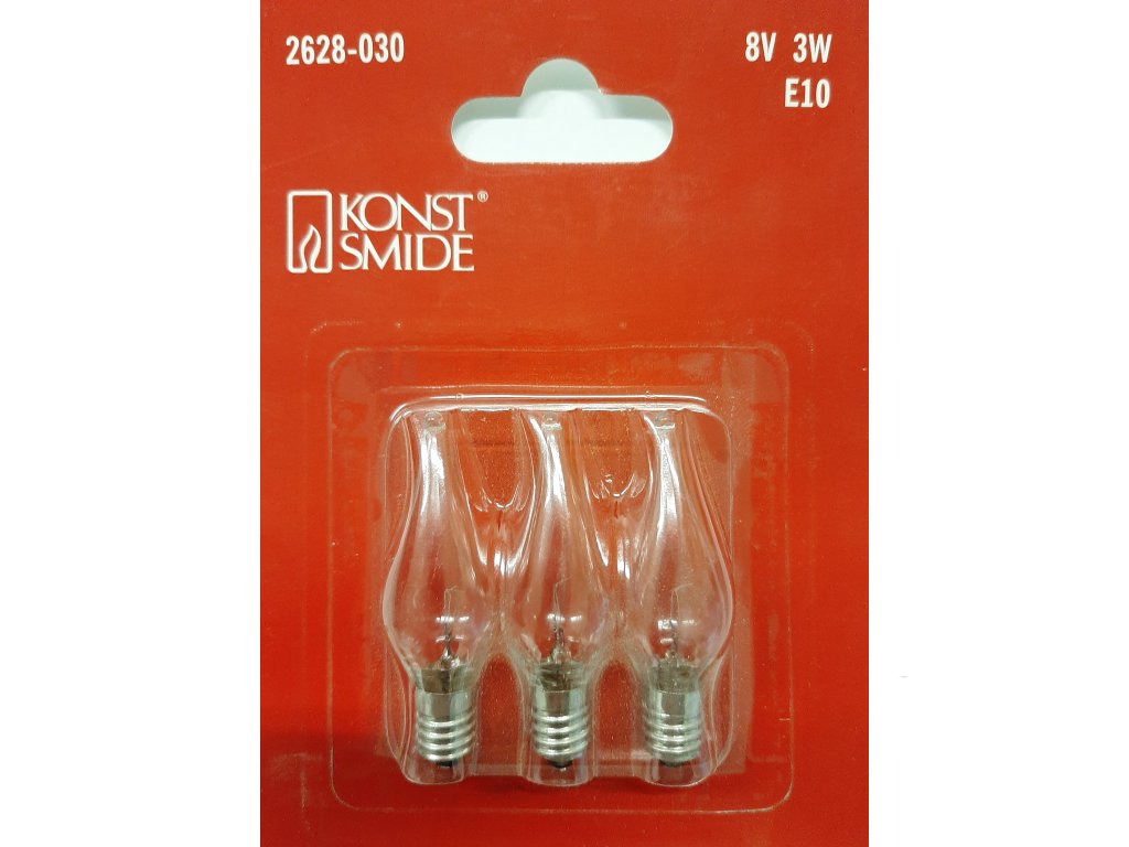 Blistr 3 čirých žárovek 8V/3W se závitem E10