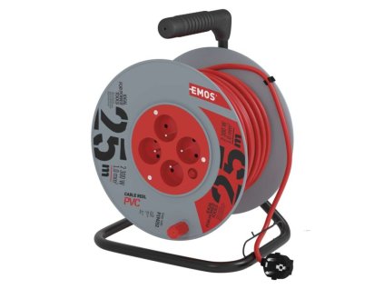 Naviják prodlužovacího přívodu s fixovaným středem. 4 zásuvky 230V~. Délka prodlužovacího přívodu 25m. Vodič PVC - H05VV-F3G 1,5mm2. Naviják má fixovaný střed což je obrovskou výhodou při manipulaci (rozmotávání/namotávání) s připojenými spotřebiči.