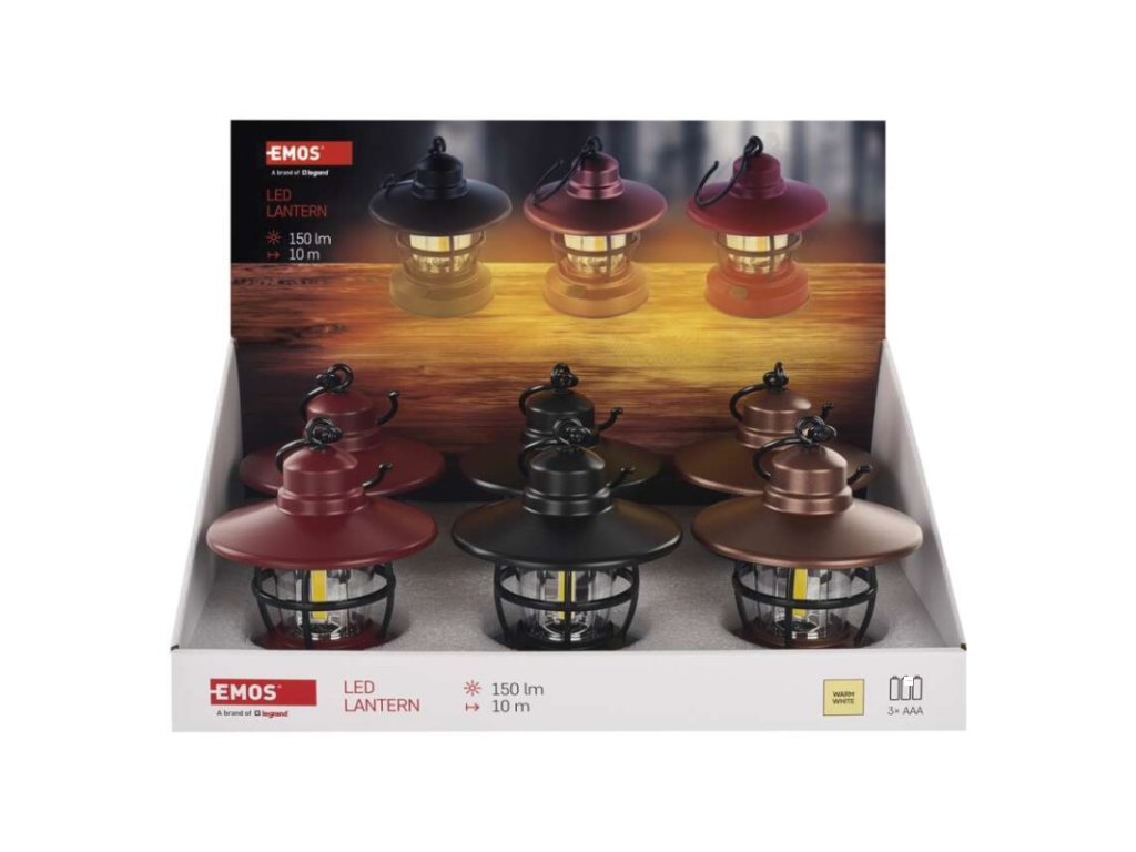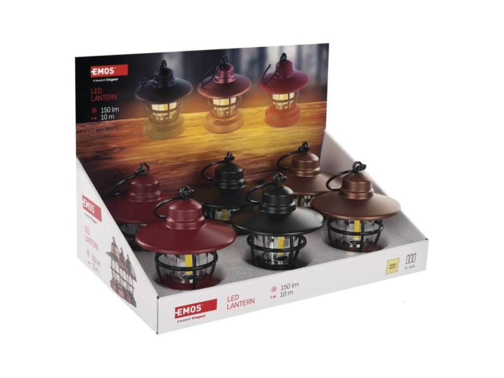 barva: červená, černá, bronzová|baterie součástí balení: ano|doba nabíjení: neuvádí se|doba svícení: 5 h|doba svícení detail: COB LED 100 % – 5 h|dosvit: COB LED 100 % – 10 m|fokus: ne|hmotnost: 107 g|LED indikace nabíjení: neuvádí se|LED indikace stavu akumulátoru: neuvádí se|materiál: ABS plast|maximální dosvit: 10 m|maximální světelný tok: 150 lm|nabíjecí: ne|napájení: 3× AAA 1,5 V (mikrotužka)|nárazuvzdornost: ne|počet režimů svícení: 1|příslušenství: neuvádí se|prodejní obal: 6 ks, display box|režimy svícení: COB LED 100 %|rozměr: 108 × 128 mm|speciální funkce: neuvádí se|světelný tok: COB LED 100 % – 150 lm|typ baterie: LR03 (1,5 V)|typ napájecího konektoru: neuvádí se|voděodolnost: ano (IP43)|vybavení: 1× hák|záruční doba: 2 roky|zdroj světla: COB LED|značka: EMOSDoplňkové parametry