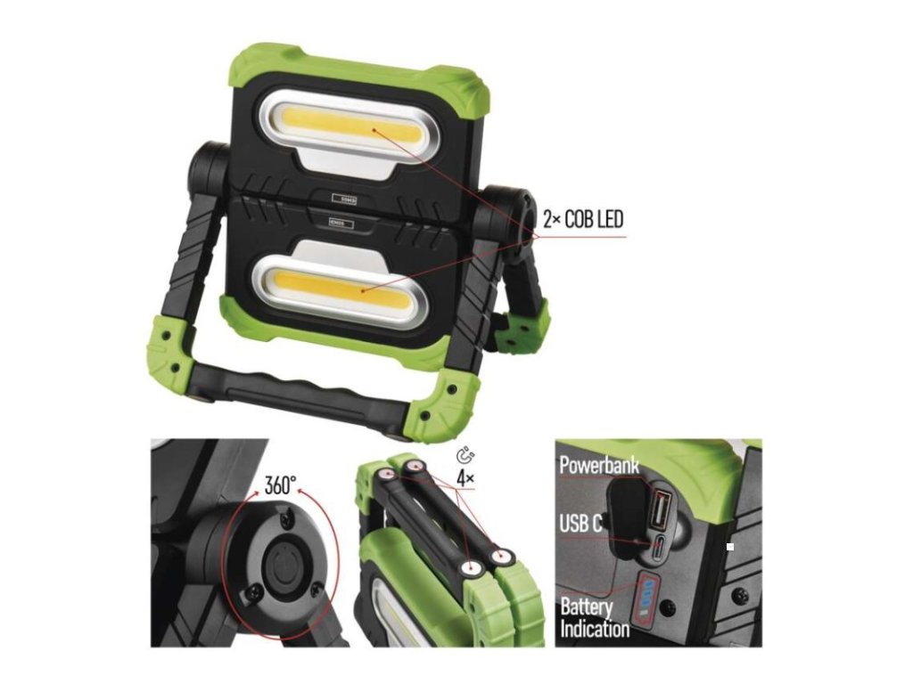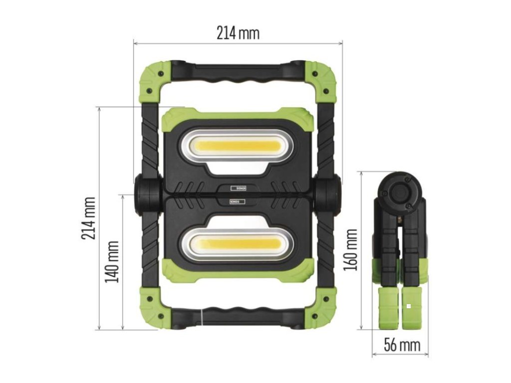 barva: černo-zelená|baterie součástí balení: ano|doba nabíjení: 7 h|doba svícení: 3,5–14,5 h|doba svícení detail: 2× COB LED 100 % – 3,5 h, 2× COB LED 50 % – 5,5 h, 1× COB LED 100 % – 5,5 h, 1× COB LED 50 % – 8,5 h, 1× COB LED 25 % – 14,5 h|dosvit: 2× COB LED 100 % – 70 m, 2× COB LED 50 % – 45 m, 1× COB LED 100 % – 45 m, 1× COB LED 50 % – 35 m, 1× COB LED 25 % – 25 m|fokus: ne|hmotnost: 818 g|LED indikace nabíjení: ano|LED indikace stavu akumulátoru: ano|materiál: ABS plast + guma|maximální dosvit: 70 m|maximální světelný tok: 2 000 lm|nabíjecí: ano|napájení: Li-Ion akupack|nárazuvzdornost: ano|počet režimů svícení: 5|příslušenství: USB kabel|prodejní obal: 1 ks, krabice|režimy svícení: 2× COB LED 100 %, 2× COB LED 50 %, 1× COB LED 100 %, 1× COB LED 50 %, 1× COB LED 25 %|rozměr: 214 × 140 (280) × 56 mm|speciální funkce: funkce rychlého vypnutí, funkce ochrany baterie|světelný tok: 2× COB LED 100 % – 2 000 lm, 2× COB LED 50 % – 1 000 lm, 1× COB LED 100 % – 1 000 lm, 1× COB LED 50 % – 500 lm, 1× COB LED 25 % – 250 lm|typ baterie: 8 000 mAh/3,7 V|typ napájecího konektoru: USB C|voděodolnost: ne|vybavení: otočná rukojeť, 4× magnet|záruční doba: 2 roky|zdroj světla: 2× COB LED|značka: EMOSDoplňkové parametry