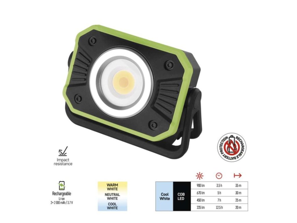 COB LED nabíjecí pracovní reflektor P4542, 900 lm, 4400 mAh