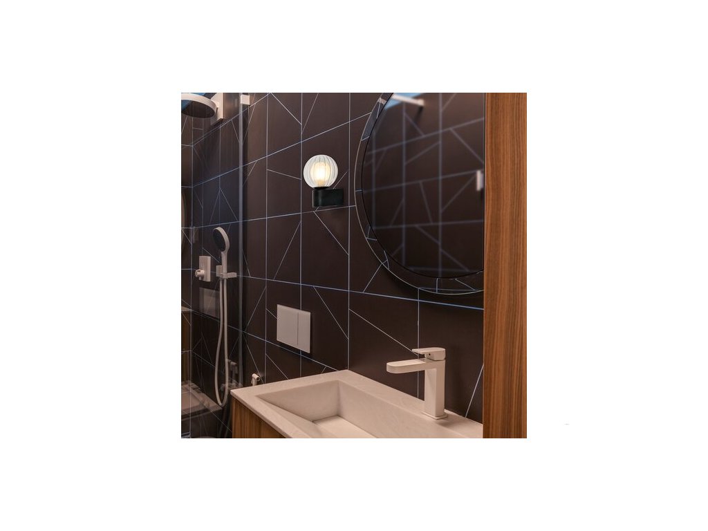Nástěnné svítidlo Rábalux Colzar doporučujeme těm, kdo hledají moderní, elegantně vypadající doplňkové svítidlo, které poskytuje příjemné náladové osvětlení. Matné černé tělo svítidla je vyrobeno z kovu, zatímco průhledné sférické stínítko na vrcholu dekorativního podstavce, který vyčnívá ze stěny, je vyrobeno ze skla. Jelikož zdroj světla je přes stínítko jasně viditelný, je dobré zvolit k nástěnnému ramenu žárovku s estetickým tvarem, aby se zvýraznil jedinečný vzhled svítidla. Nástěnné svítidlo malých rozměrů je odolné proti stříkající vodě, takže jej můžete instalovat směle nejen do obývacího pokoje, ale také do koupelny. Do patice G7 lze vložit žárovku o výkonu maximálně 3,5 W. Lampa se dodává bez světelného zdroje.