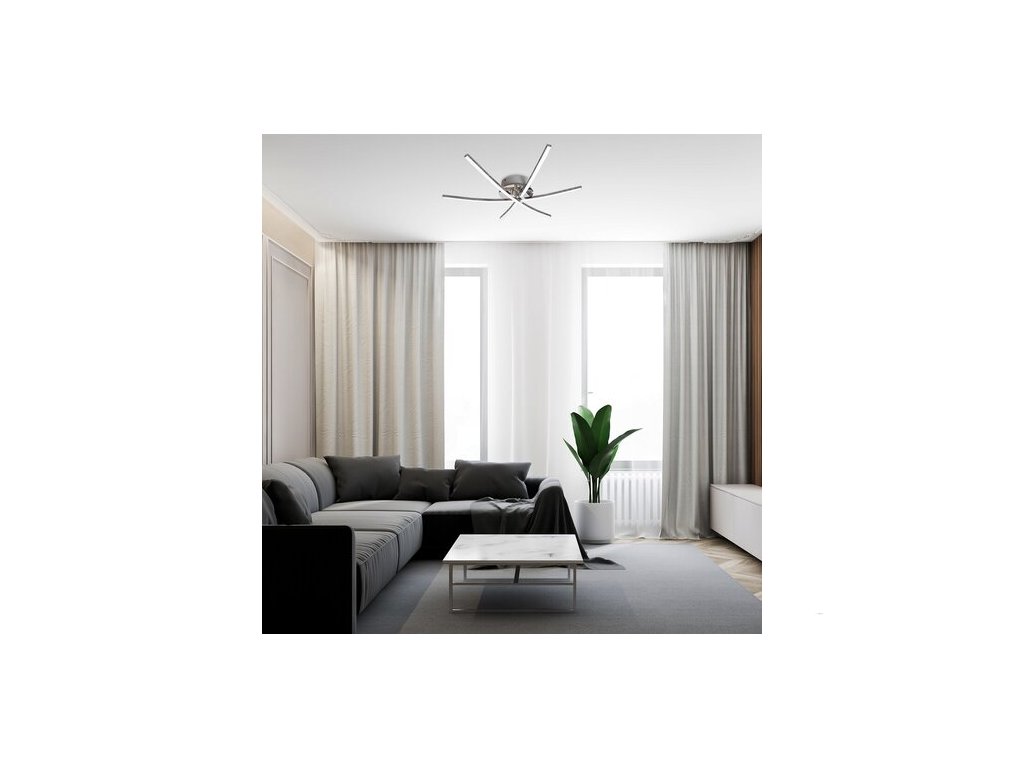 Stropní svítidlo Cyclone určené do moderních obýváků. Doporučujeme jej těm, kteří mají rádi lesklé chromové povrchy a namísto decentních stropních svítidel splývajících s rovinou stropu by zvolili nápadnější a osobitější model. Kovové svítidlo Cyclone ve tvaru hvězdy je doplněno bílými plastovými kryty a lze jej připevnit na strop pomocí malého kulatého podstavce. Tři dlouhé, jemně zakřivené, protínající se prvky lampy jsou připevněny k dekorativnímu podstavci a tvoří šesticípou zářící hvězdu. Stropní svítidlo má zabudovaný LED světelný zdroj energetické třídy G, s výkonem 21 W, svítivostí 1450 lumenů se stínítkem, 2250 lumenů bez tímndla a životností 20 000 hodin. Barevná teplota svítidla je 4000 K, tzn. svítí přirozeným bílým světlem a vytváří moderní, čistý efekt v obýváku. Rozměry Cyclone: průměr 570 mm, vzdálenost od stropu 90 mm, jeho montážní průměr 120 mm.