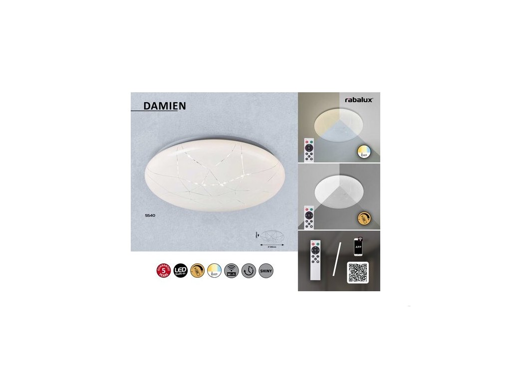 Stropní svítidlo Damien se od průměrného svítidla odlišuje nejen speciálním pavučinovým vzorem stínítka. Díky mnoha extra funkcím je skvělou volbou i pro nejnáročnější zákazníky. Moderní bílý model je vyroben z kovu a plastu a má vestavěný zdroj světla LED. Spotřeba energie světelného zdroje je 24 W, jeho svítivost je 1920 lumenů a životnost 30000 hodin. Barevnou teplotu svítidla je možné podle přání nastavit mezi 3000 a 6500 K. Svítidlo Damien je také stmívatelné, což znamená, že jeho jas lze nastavit podle vašich potřeb a má také funkci časovače. Třešničkou na dortu je, že svítidlo je možné ovládat pomocí aplikace přes Wi-Fi připojení. Díky bezplatné aplikaci, kterou si můžete stáhnout do svého smartphonu nebo tabletu, můžete pohodlně nastavit požadované světlo a zapnout a vypnout světlo doma nebo na dálku. Doporučujeme vám, abyste tento skvělý model použili ve své obývacím pokoji, jídelně, ložnici nebo na chodbě. Dálkově ovládané, kulaté svítidlo má průměr 390 mm a vzdálenost 100 mm od stropu. Na fantastické stropní svítidlo Damien se vztahuje záruka 5 let. Aplikaci na ovládání svítidla Damien si můžete stáhnout pomocí QR kódu (klikněte na obrázky).