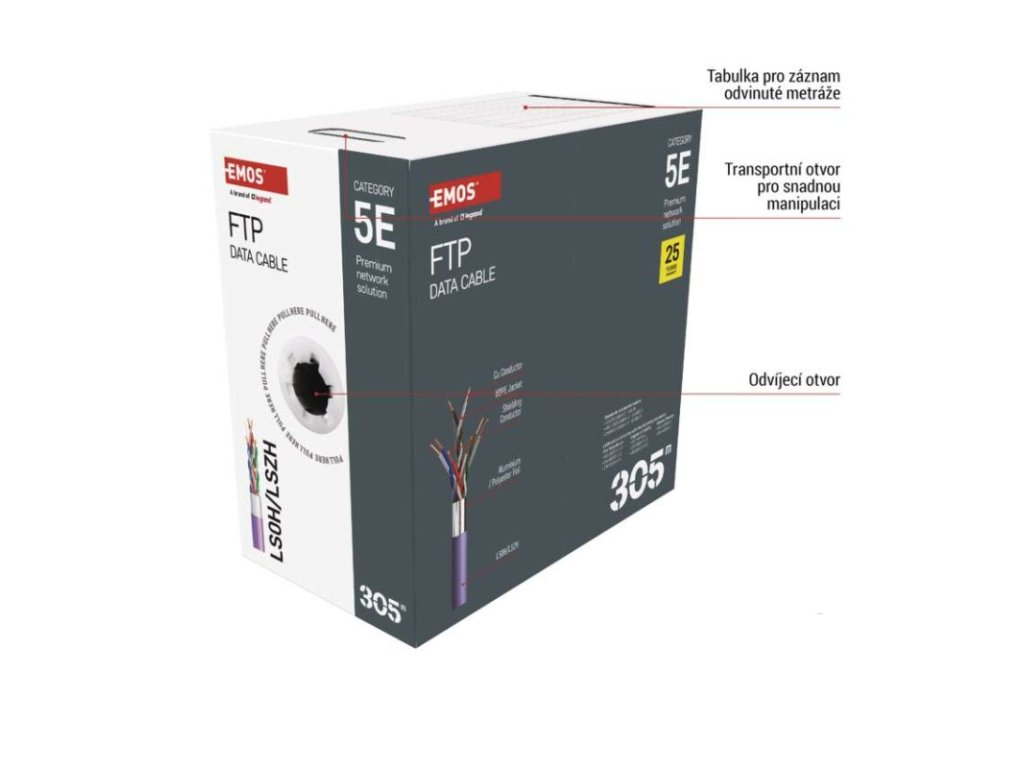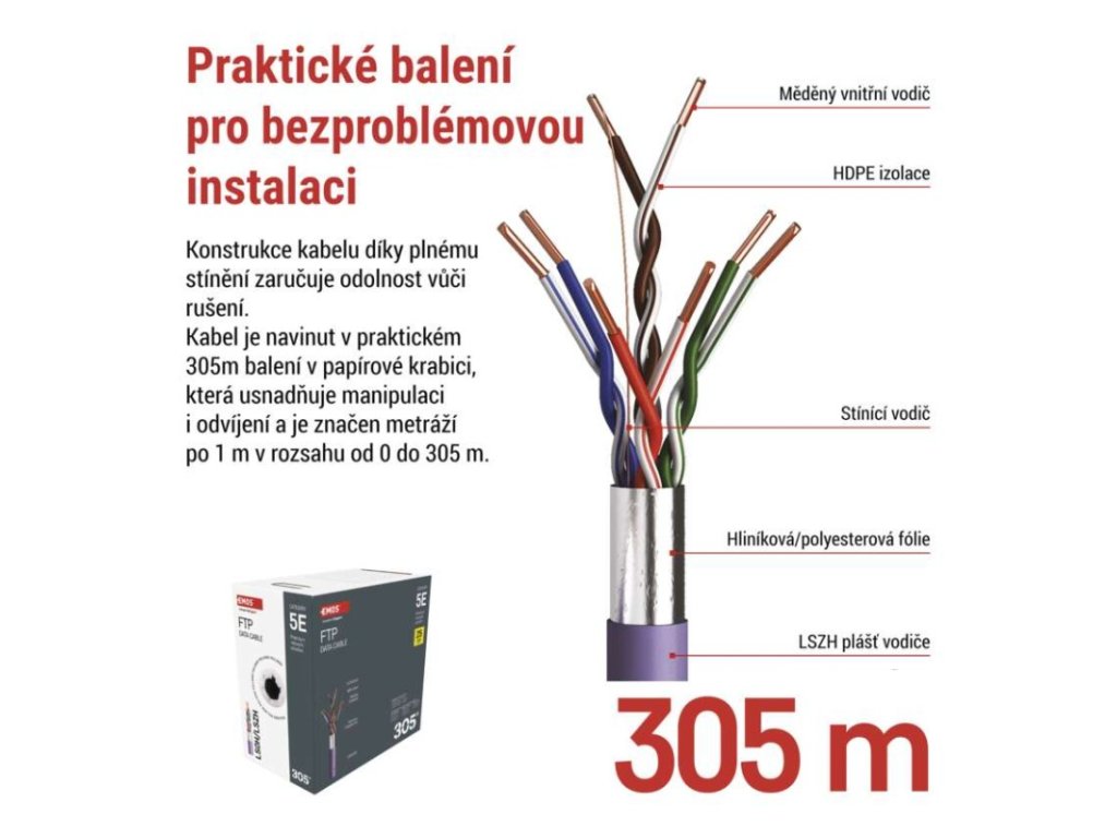 | značení kabelu: | FTP Cat5E LSZH 1 – 305 m |