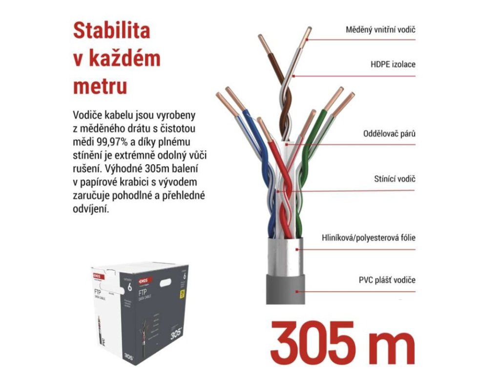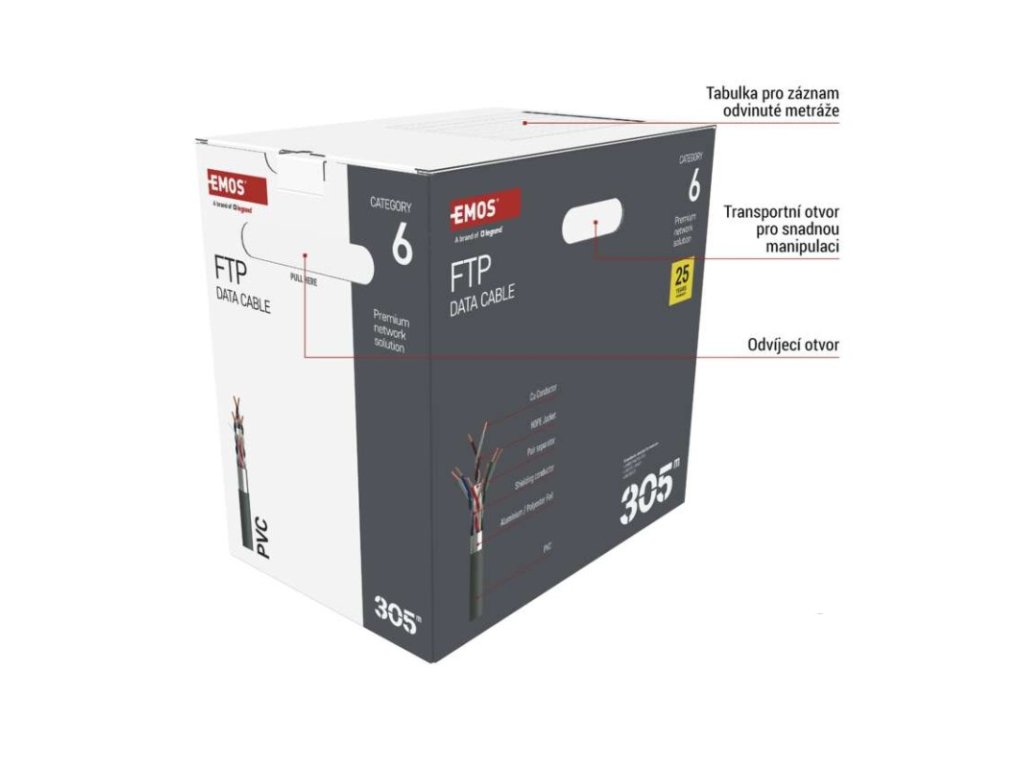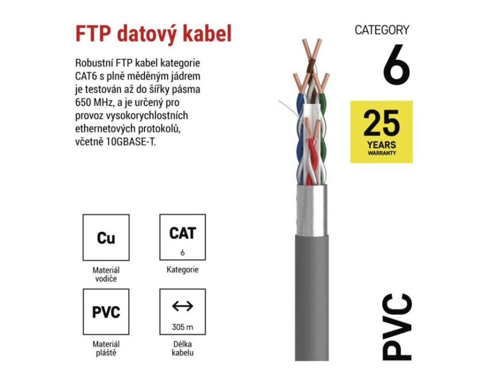 značení kabelu: | FTP CAT 6 PVC 1 – 305 m |