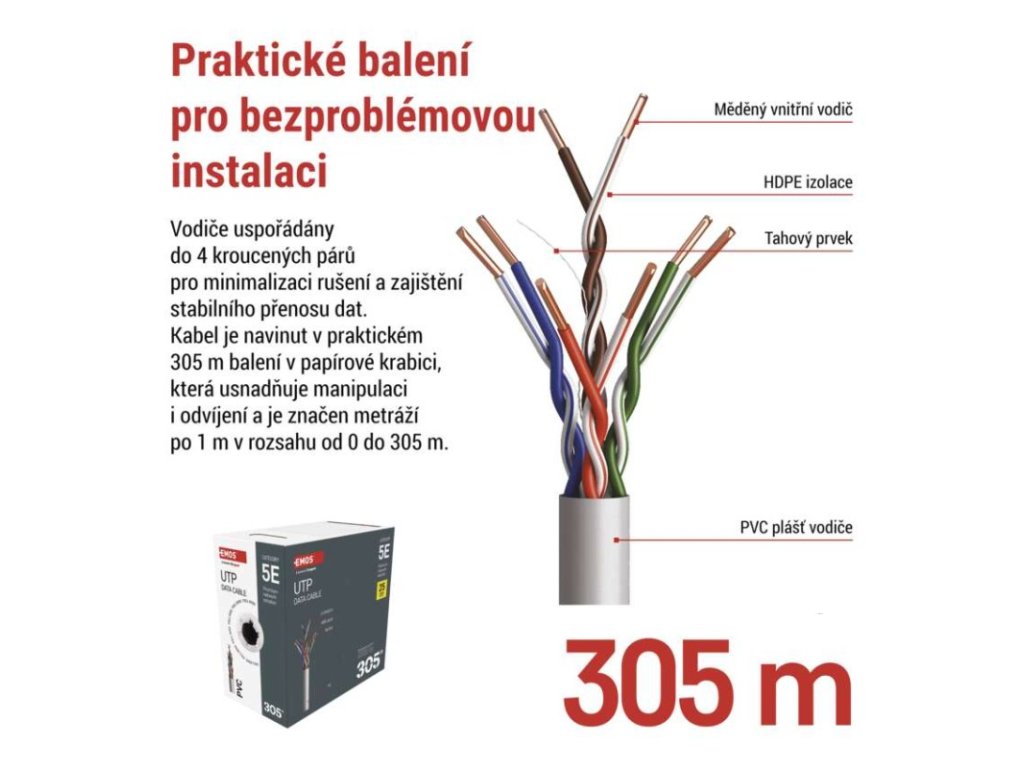 | značení kabelu: | UTP Cat5E PVC 1 – 305 m |
