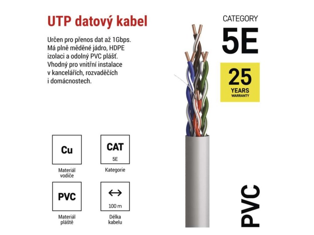 značení kabelu: | UTP Cat5E PVC 1 – 100 m |