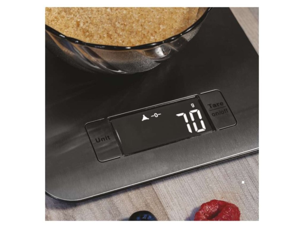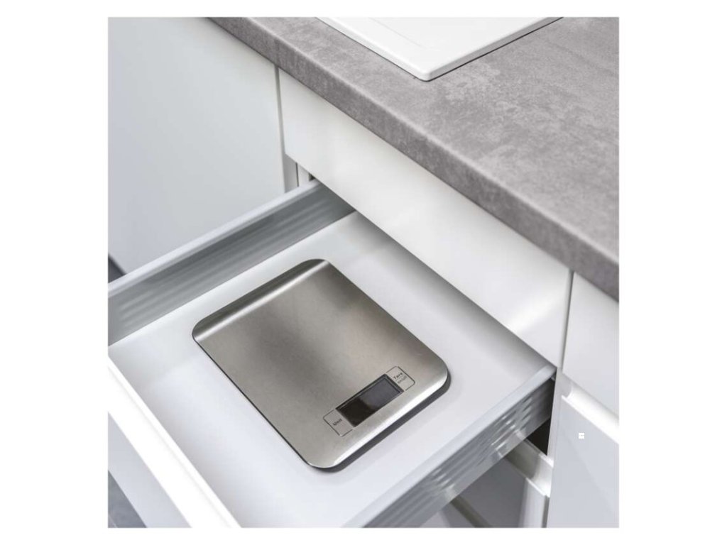 automatické vypnutí: po 2 minutách|barva: stříbrná|Bluetooth: ne|BMI index – měření tuku, vody a svalové hmoty: ne|další funkce: –|funkce dovažování: ano|indikace slabých baterií: ano|indikátor přetížení: ano|jazyky aplikace: –|jednotky váhy: g, oz, lb, kg|kompatibilita: –|LCD displej: ano|max. zátěž: 5 kg|napájení: 2× 3 V CR2032 (součástí balení)|notifikace do mobilní aplikace: –|ovládání hlasovými asistenty: –|paměť: ne|podporované OS: –|podsvícený displej: ano|povrch váhy: nerez|přenosová frekvence: –|přesnost vážení: 1 g|prodejní obal: 1 ks, krabička|produkt: kuchyňská váha|protokol: –|rozměr: 15 × 163 × 221 mmDoplňkové parametry
