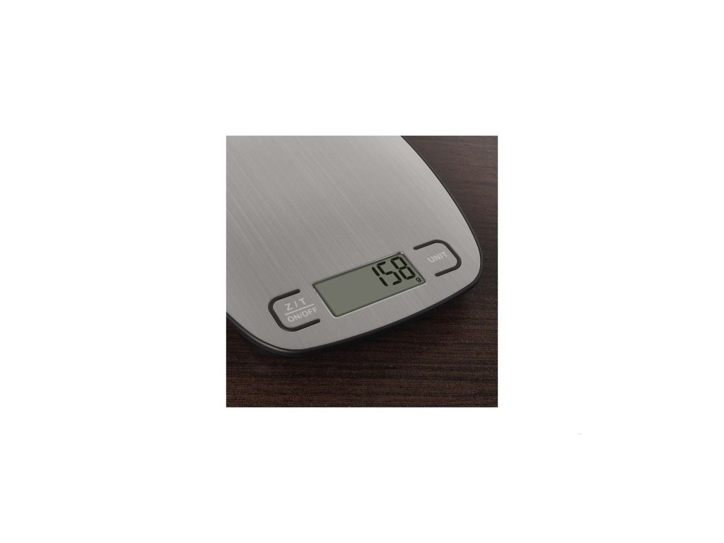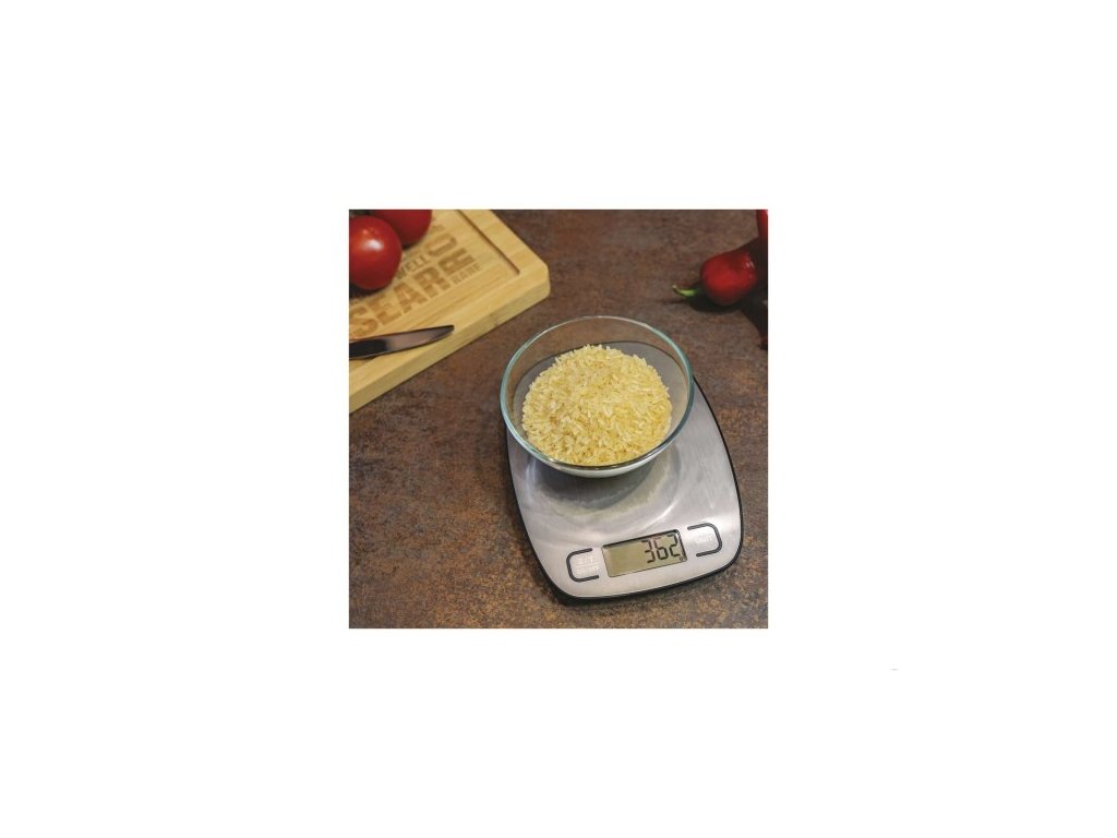 automatické vypnutí: po 90 sekundách|barva: stříbrná|Bluetooth: ne|BMI index – měření tuku, vody a svalové hmoty: ne|funkce dovažování: ano|indikace slabých baterií: ano|indikátor přetížení: ano|jednotky váhy: g, kg, ml, oz, lb, tl|LCD displej: ano|max. zátěž: 10 kg|napájení: 2× 1,5 V AAA (součástí balení)|paměť: ne|podsvícený displej: ne|povrch váhy: nerez|přesnost vážení: 1 g|prodejní obal: 1 ks, krabička|produkt: kuchyňská váha|rozměr: 20 × 152 × 204 mmDoplňkové parametry