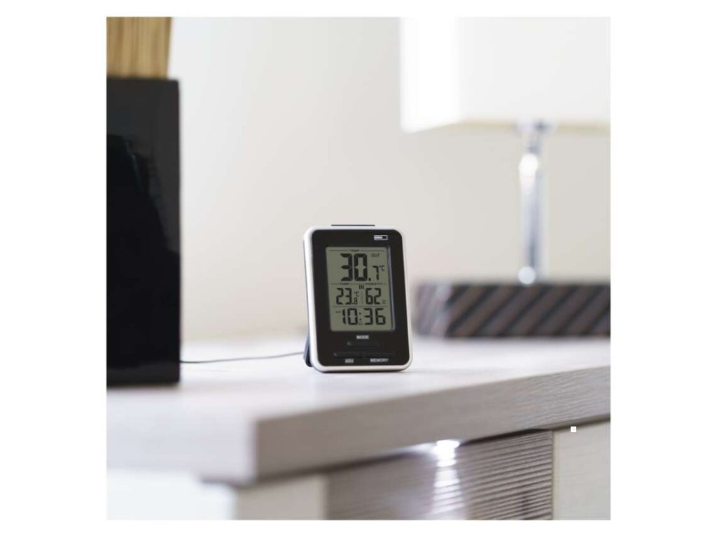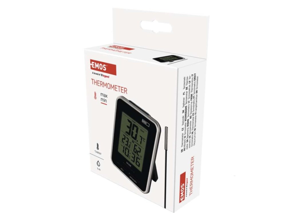 12/24 formát času: ano|barevný displej (black mask) podsvícený: ne|budík: ano|časová pásma: ne|datum: ne|dosah ve volném prostoru: ne|drátová sonda k čidlu: 2,9 m, Ø 4 mm|funkce stopky: ne|hodiny: ano|kalendář: ne|LED podsvícení displeje: ne|magnet na připevnění: ne|min. a max. teplota: ano|možné další čidlo: ne|možnost nastavení jednotky teploty: °C/°F|možnost pověšení na zeď: ano|napájení čidla: ne|napájení stanice: 1× 1,5 V AAA (není součástí balení)|odpočet času max. od: ne|opakované buzení: ano|paměť poslední hodnoty: ne|přenosová frekvence: ne|prodejní obal: 1 ks, krabička|provedení teploměru: drátový|rozměr čidla: ne|rozměr hlavní jednotky: 23 × 76 × 107 mm|síťový adaptér: ne|teplotní index: ne|teplotní výstraha: ne|trend teploty: ne|trend tlaku: ne|trvalé podsvícení: ne|velikost displeje: 46 × 61 mm|venkovní teplota: -40 °C až +60 °C, rozlišení 0,1 °C|venkovní vlhkost: ne|vnitřní teplota: 0 °C až +50 °C, rozlišení 0,1 °C|vnitřní vlhkost: 25 % až 95 % RV, rozlišení 1 %Doplňkové parametry
