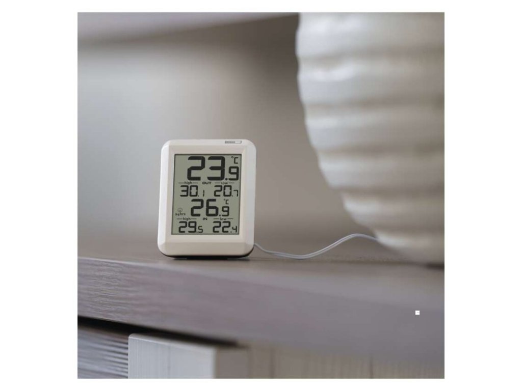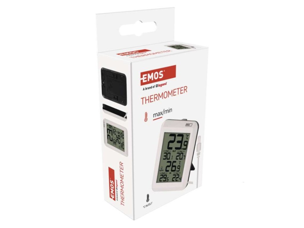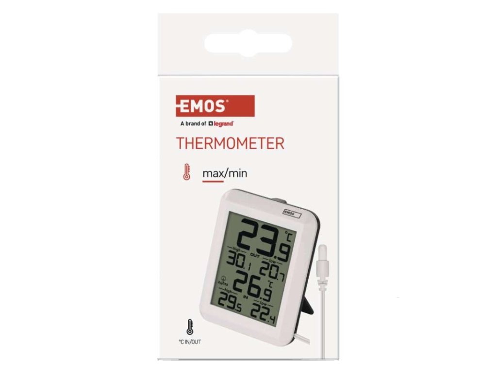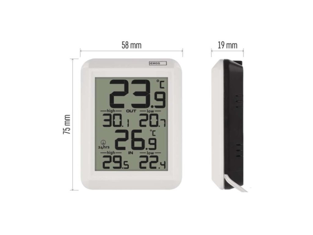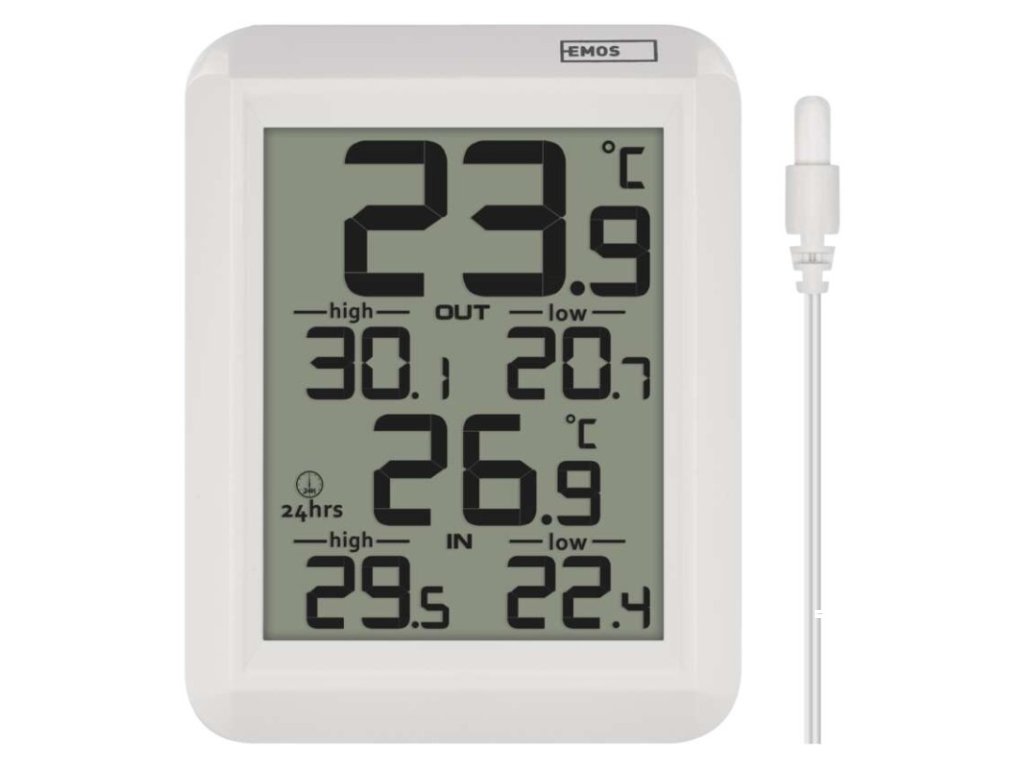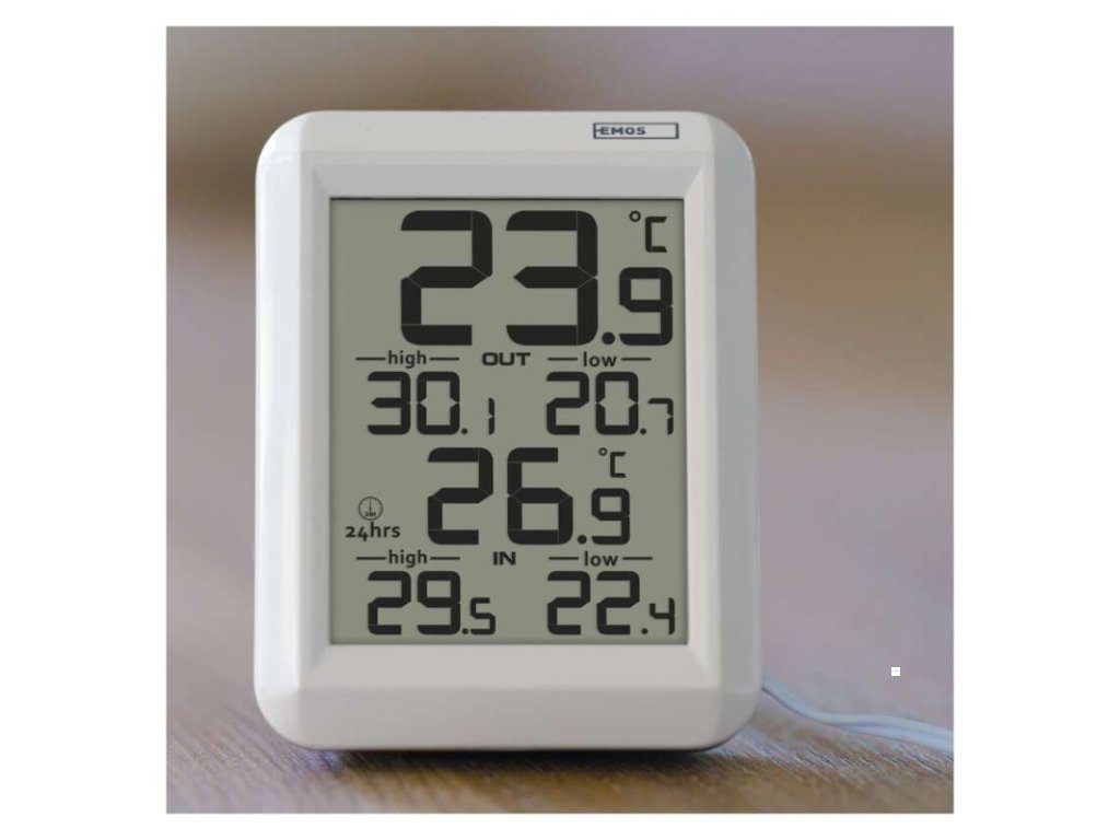 12/24 formát času: ne|barevný displej (black mask) podsvícený: ne|budík: ne|časová pásma: ne|datum: ne|dosah ve volném prostoru: ne|drátová sonda k čidlu: 0,9 m|funkce stopky: ne|hodiny: ne|kalendář: ne|LED podsvícení displeje: ne|magnet na připevnění: ne|min. a max. teplota: ano|možné další čidlo: ne|možnost nastavení jednotky teploty: °C/°F|možnost pověšení na zeď: ano|napájení čidla: ne|napájení stanice: 2× 1,5 V AAA (nejsou součástí balení)|odpočet času max. od: ne|opakované buzení: ne|paměť poslední hodnoty: ne|přenosová frekvence: ne|prodejní obal: 1 ks, krabička|provedení teploměru: drátový|rozměr čidla: ne|rozměr hlavní jednotky: 19 × 58 × 75 mm|síťový adaptér: ne|teplotní index: ne|teplotní výstraha: ne|trend teploty: ne|trend tlaku: ne|trvalé podsvícení: ne|velikost displeje: 41 × 52 mm|venkovní teplota: -40 °C až +60 °C, rozlišení 0,1 °C|venkovní vlhkost: ne|vnitřní teplota: 0 °C až +60 °C, rozlišení 0,1 °C|vnitřní vlhkost: neDoplňkové parametry
