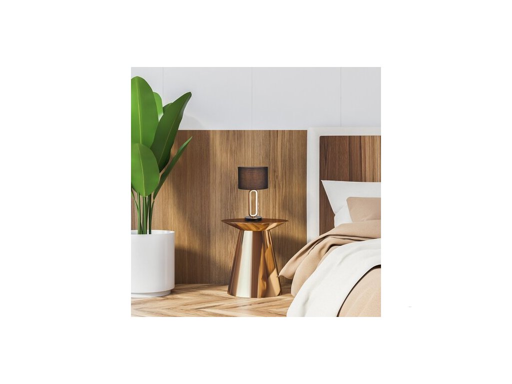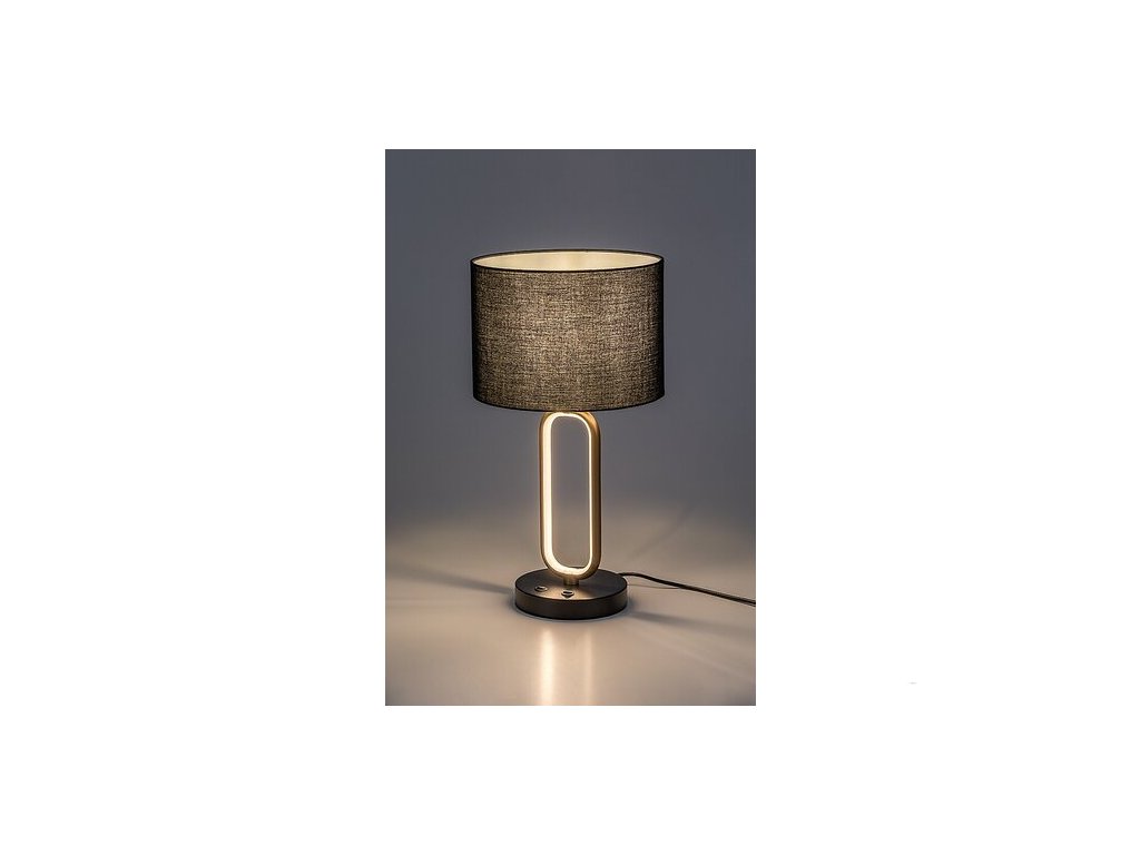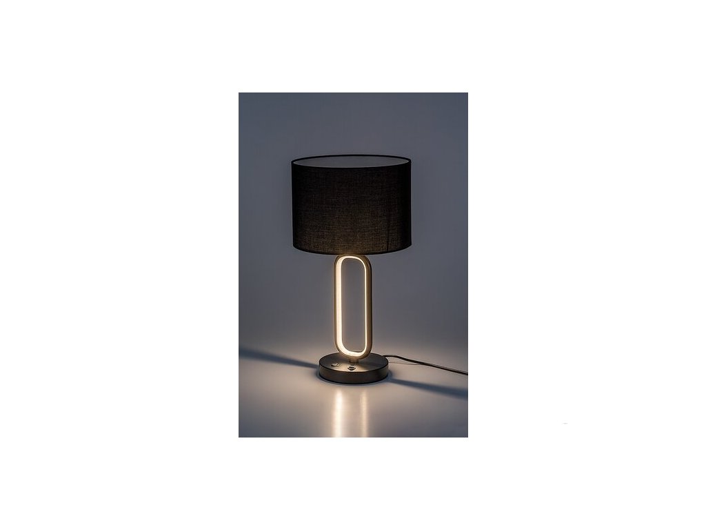 Stolní lampa Rabalux Domiro je ideální volbou pro ty, kteří chtějí spojit moderní a kreativní design s energetickou účinností. Tento jedinečný model je vyroben s kovovou konstrukcí ve zlaté barvě a černým válcovitým textilním stínidlem, doplněným kulatou černou dekorativní základnou. Lampa je ovládána vypínačem a obsahuje vestavěný LED světelný zdroj, který v kreativním řešení vyzařuje teplé bílé světlo uvnitř rámu tvořícího rameno lampy. Tento zdroj lze doplnit světelnou žárovkou o výkonu až 60 W, která se umisťuje do objímky kryté stínidlem. Typ objímky je E27. Tento stylový stolní model se vyznačuje energeticky úsporným provozem a dlouhou životností díky LED technologii. Doporučujeme jej především do obývacího pokoje nebo ložnice. Lampa se dodává bez světelného zdroje.