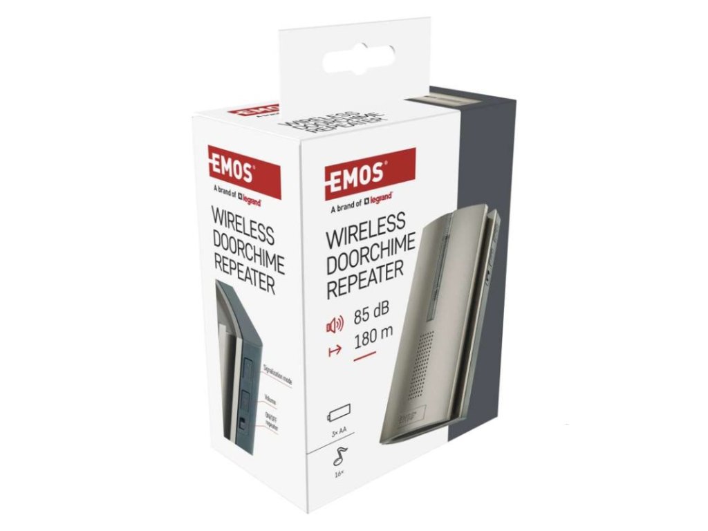 barva: stříbrná|další funkce: –|dosah tlačítka: 180 m|hlasová komunikace: ne|instalační materiál: –|jazyky aplikace: –|kompatibilita: –|maximální hlasitost zvonění: 85 dB|možnost přidat další tlačítko: ano, max. 8|napájení hlavní jednotky: 3× 1,5 V AA (nejsou součástí balení)|napájení tlačítka: –|notifikace do mobilní aplikace: ne|optická signalizace na tlačítku: ano|optická signalizace na zvonku: ano|ovládání hlasovými asistenty: ne|počet melodií: 16|počet přijímačů v balení: 1 ks|počet tlačítek v balení: není v balení|podporované OS: –|přenosová frekvence: 433 MHz|přídavné (náhradní) tlačítko: P5760T|prodejní obal: 1 ks, blistr|protokol: –|řada: –|regulace hlasitosti: ano, 5 úrovní|rozměr tlačítka: –|rozměr zvonku: 34 × 65 × 116 mm|speciální funkce: funkce repeater – umožňuje prodloužit dosah tlačítka o několik stovek metrů navíc.|voděodolné tlačítko: neuvádí se|způsob párování: automatické párování–self-learning|způsob přenosu: bezdrátový zvonekDoplňkové parametry