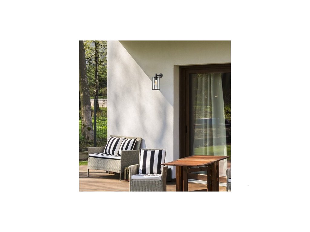 Venkovní nástěnné svítidlo Dubrovnik svítí směrem dolů a je klasického stylu. Matná černá hliníková svítilna doplňuje šestiúhelníkové průhledné skleněné stínítko a malý kulatý dekorativní podstavec. Visací hlava lampy je spojena s vodorovným prvkem vyčnívajícím ze základny ozdoby. Nástěnné svítidlo Dubrovnik se doporučuje především na terasu, ale lze jej instalovat i jinde na vnější stěnu domu. Venkovní svítilnu lze použít s jedním světelným zdrojem o výkonu do 40 W, typ patice E27. Dubrovnik má tyto rozměry: šířka 155 mm, výška 310 mm, vzdálenost od stěny 180 mm, instalační průměr 80 mm. Krytí IP44 nástěnného svítidla zaručuje, že je chráněno proti vniknutí předmětů o průměru až 1 mm a proti stříkající vodě z jakéhokoli směru. Venkovní lampa Dubrovnik se dodává bez světelného zdroje.