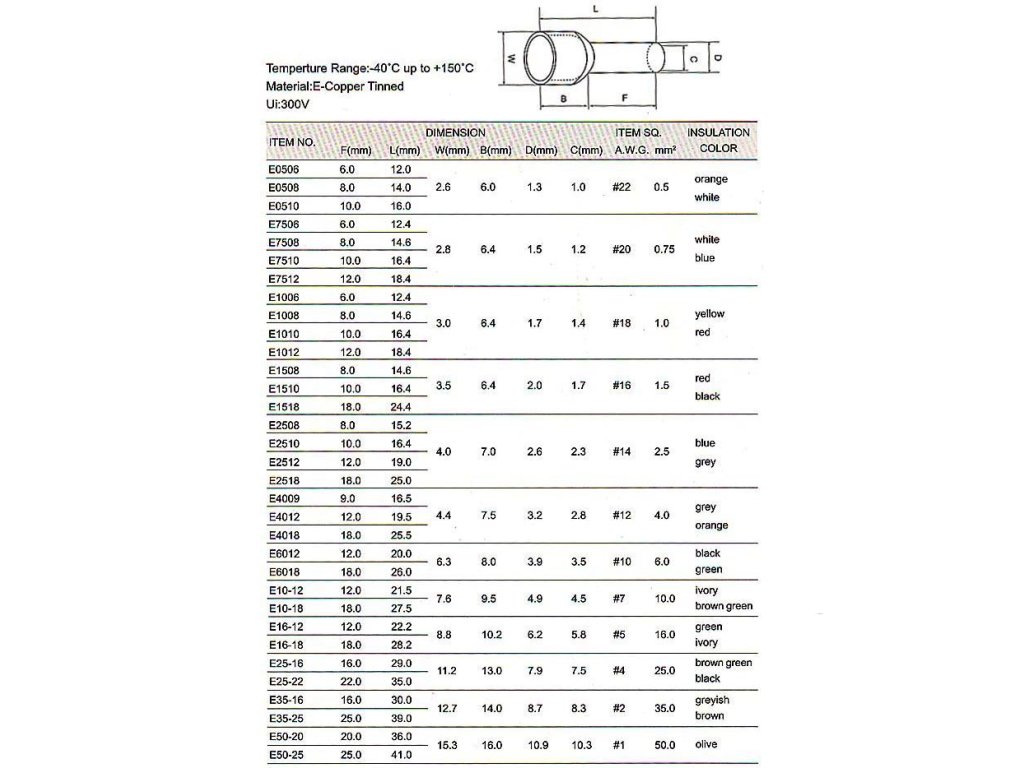 Dutinka pro kabel 0,75mm2 bílá (E7508), balení 100ksDoplňkové parametry