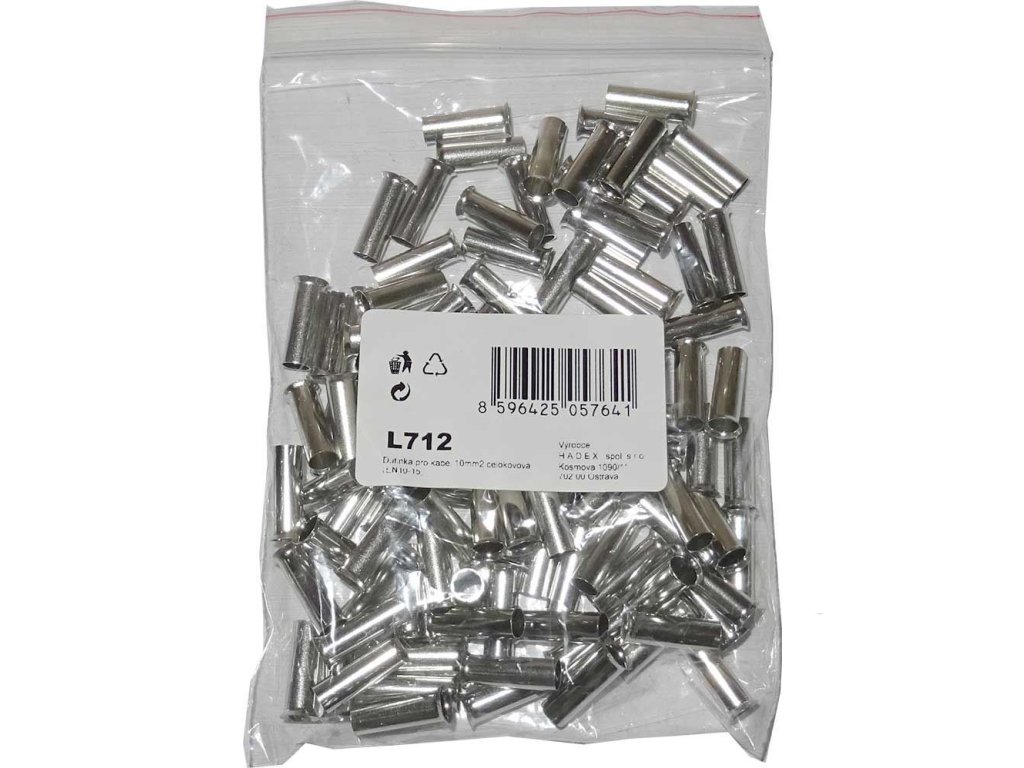 Dutinka pro kabel 10mm2 celokovová (EN10-15), balení 100ksDoplňkové parametry