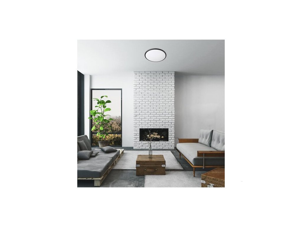 Velké kulaté stropní svítidlo Engon je vhodnou volbou do každého moderního obývacího pokoje nebo ložnice. Model s jednoduchým tenkým designem nenápadně zapadá do roviny stropu. Pro ty, kteří preferují funkci před speciálním designem, je tato lampa perfektní volbou. Vysoce svítivý Engon je černý s bílým stínítkem, celý z plastu, má vestavěný LED světelný zdroj spadající do energetické třídy G, který má výkon 45 W, svítivost 2940 lumenů se stínítkem, 4600 lumenů bez stínítka a životnost 25 000 hodin. Teplota barvy stropního svítidla je 3000 K a jeho teplé bílé světlo pomáhá vytvořit intimní, domáckou atmosféru. Průměr Engonu je 480 mm a jeho vzdálenost od stropu je 70 mm.