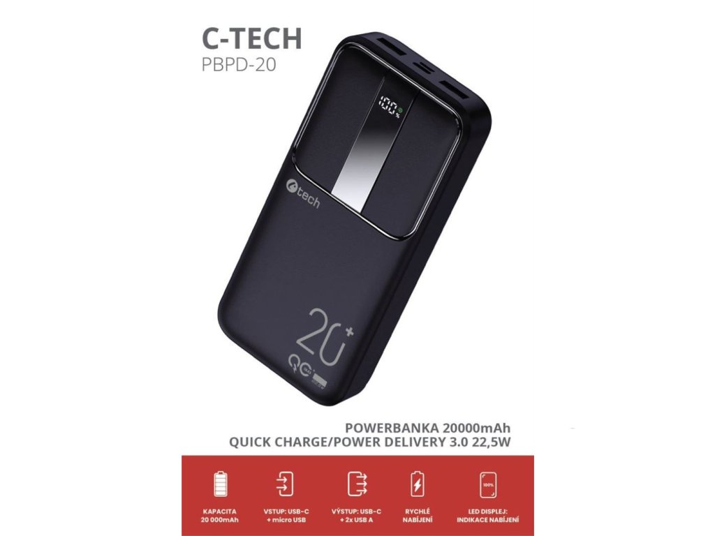 Externí baterie - powerbanka 20000mAh černáDoplňkové parametry