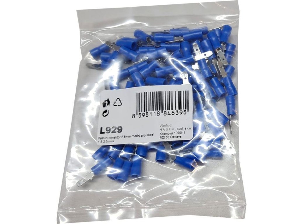 Faston-konektor 2,8mm modrý pro kabel 1,5-2,5mm2, balení 100ksDoplňkové parametry