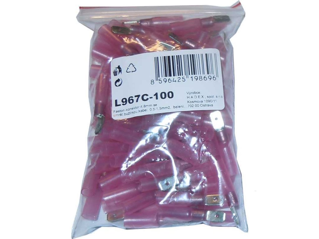 Faston-konektor 4,8mm se smršť.bužírkou,kabel 0,5-1,5mm2, balení 100ksDoplňkové parametry