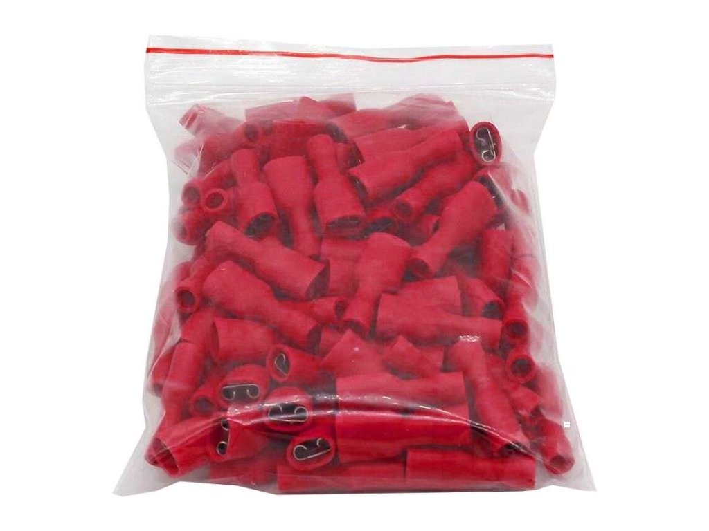 Faston-zd.6,3mm červ,kabel 0,5-1,5mm2 plná izolace, bal.100ks