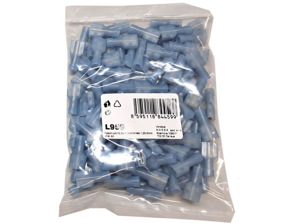 Faston-zdíř.6,3mm modrá,kab.1,25-2mm plná izol., balení 100ksDoplňkové parametry