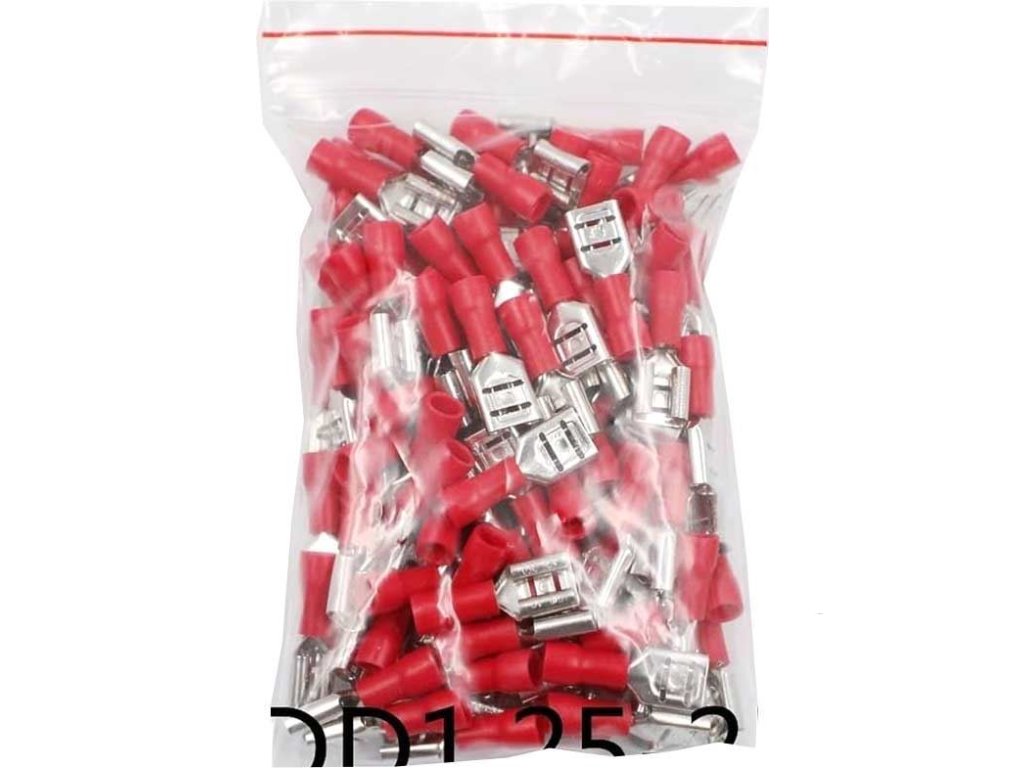 Faston-zdířka 6,3mm červená pro kabel 0,5-1,5mm2, balení 100ksDoplňkové parametry
