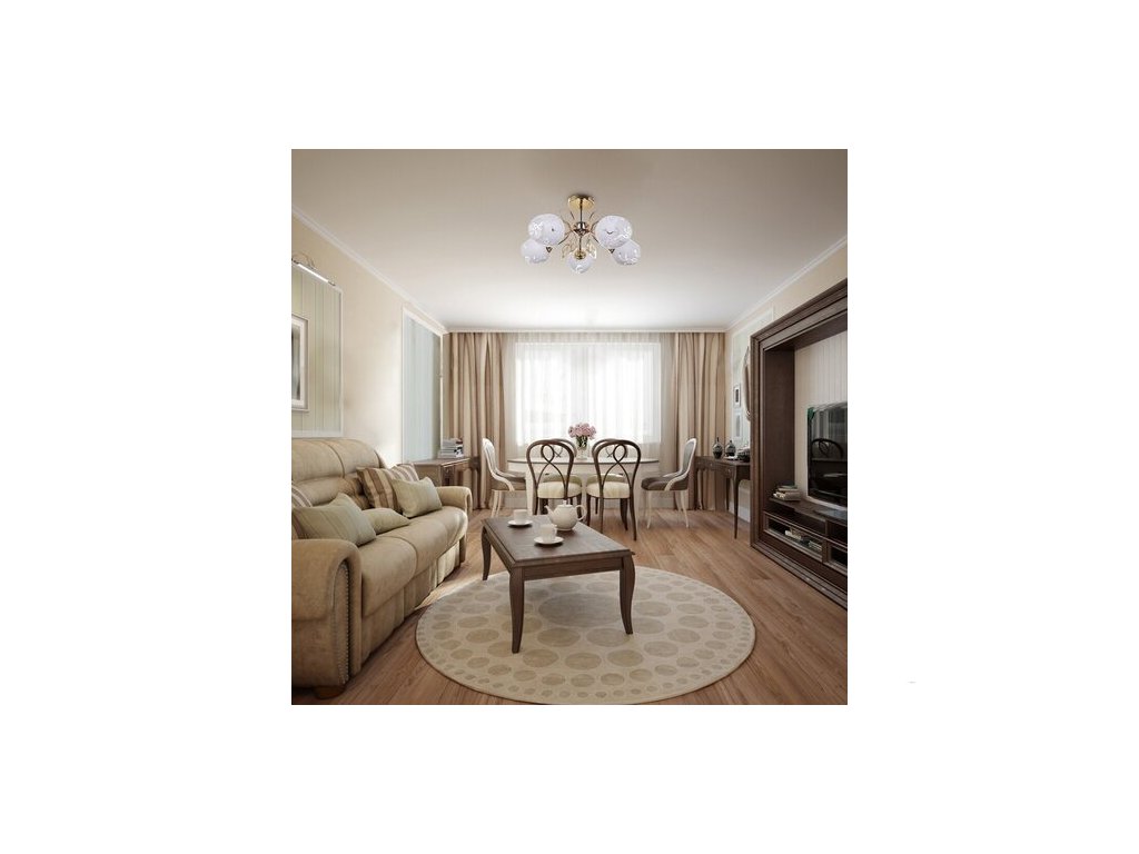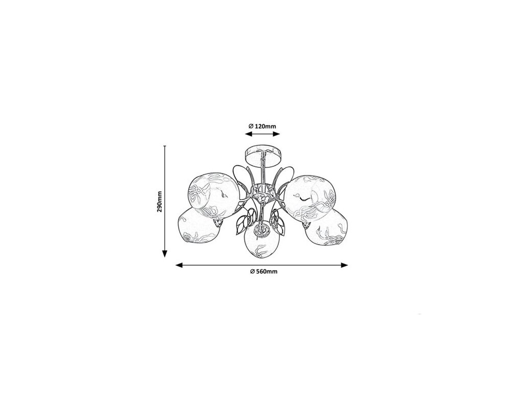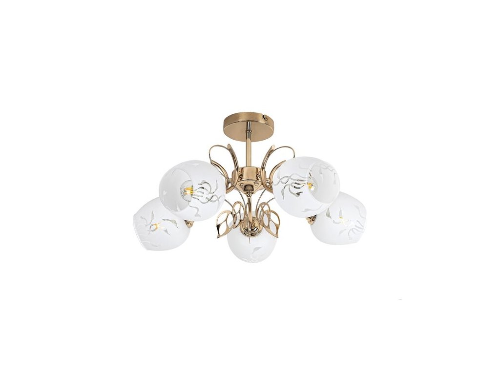 Stropní svítidlo Fauna s 5 žárovkami v klasickém stylu bude elegantním doplňkem k zařízení vašeho tradičního obývacího pokoje nebo ložnice. Stínidla z bílého skla se vzorem jsou připevněny ke zlatému kovovému svítidlu. Svítidlo lze připevnit na strop pomocí kulatého ozdobného podstavce. Kulaté stínidla s otevřeným dnem jsou připevněny k větvím světla, které se kroutí jako úponky a jsou zdobeny zlatými listy. Svítidlo Fauna může být použito s pěti žárovkami, každá s výkonem až 40W. Typ patice je E27. Pokud chcete vylepšit intimní a útulnou atmosféru, vyberte si pro toto svítidlo žárovky s teplým bílým světlem. Rozměry stropního svítidla Fauna s 5 žárovkami jsou následující: průměr 560 mm, vzdálenost od stropu 290 mm, instalační průměr 120 mm. Tento model se dodává bez světelných zdrojů.