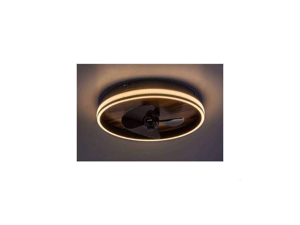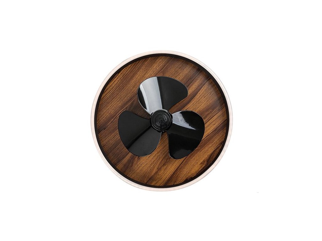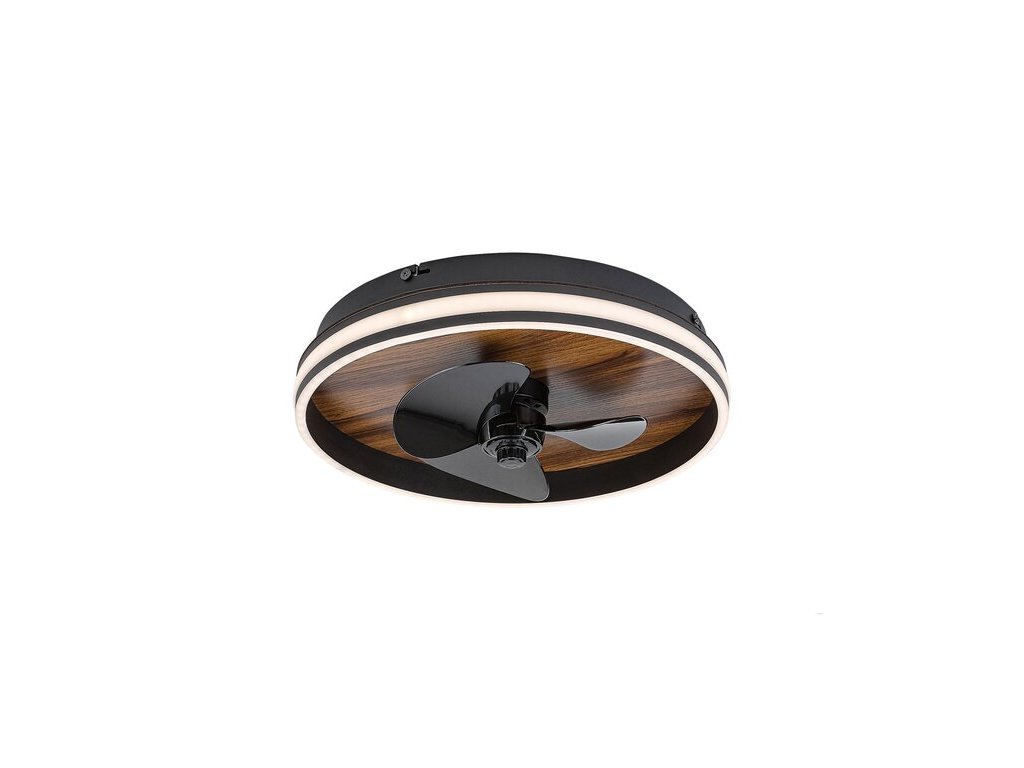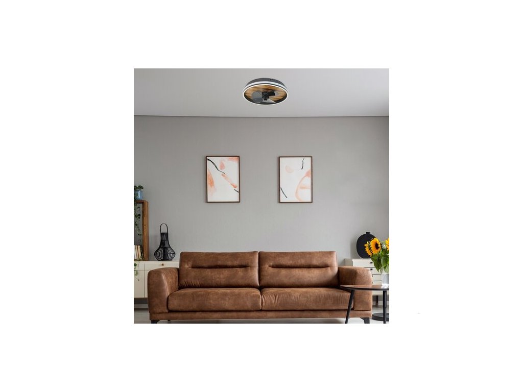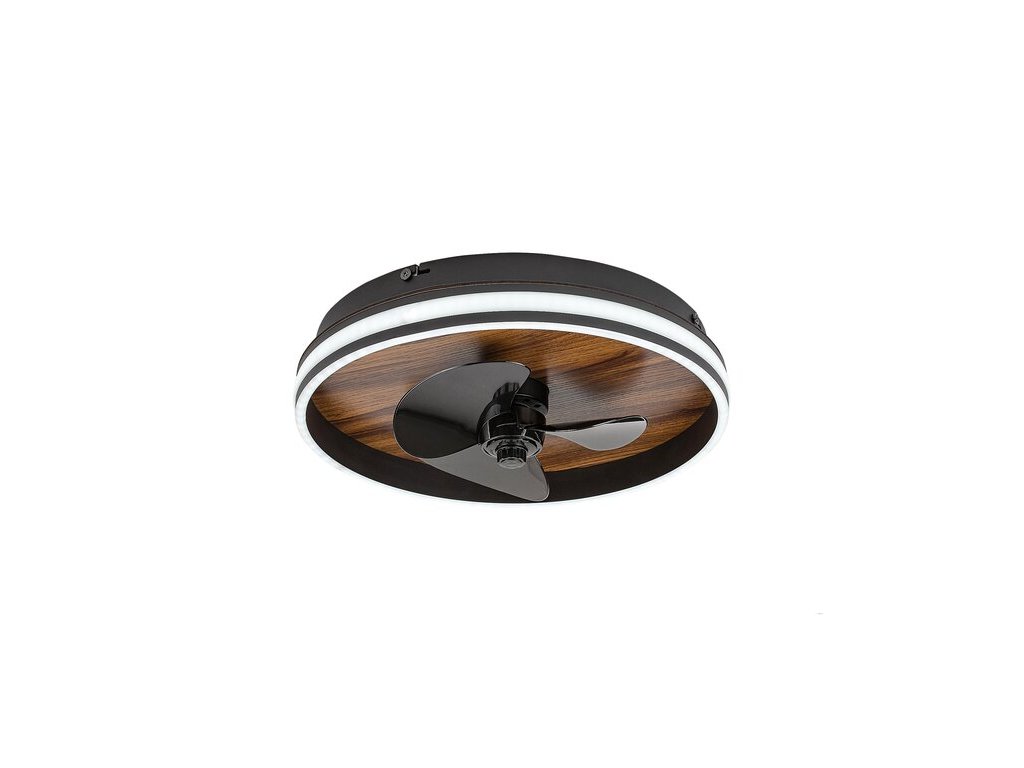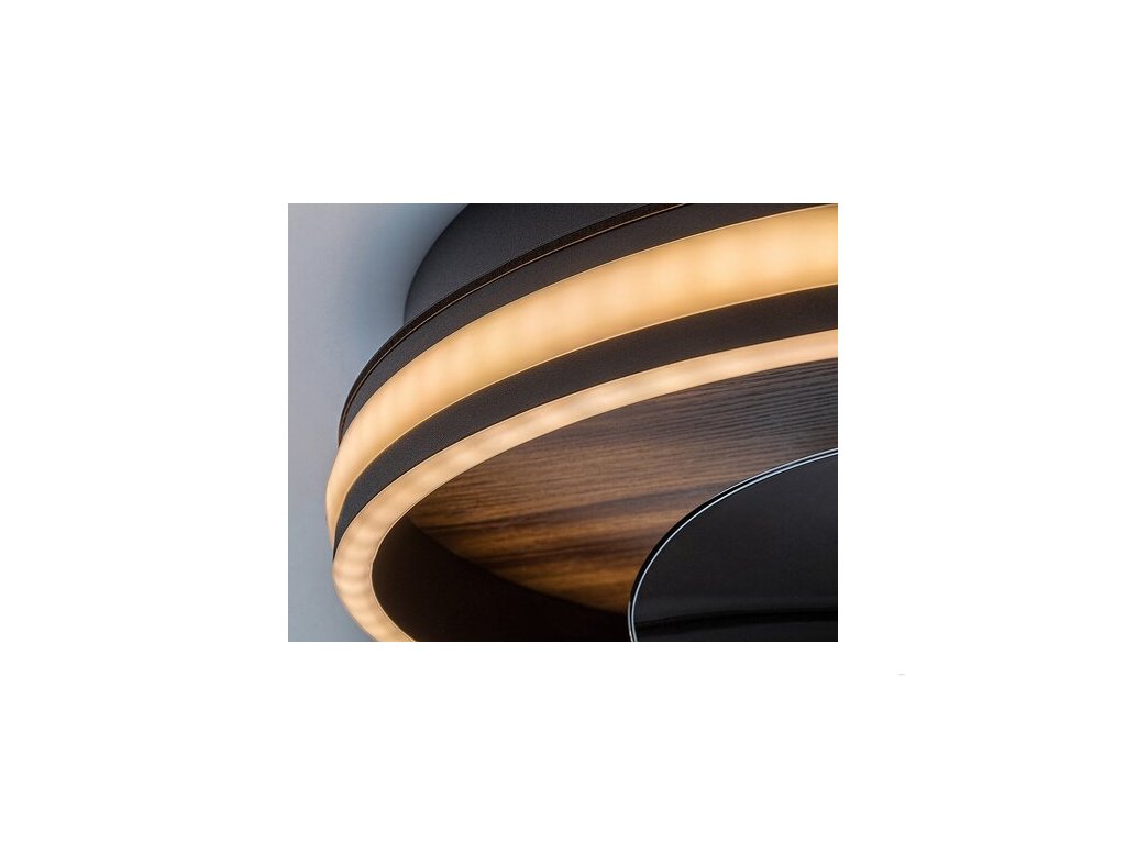 Stropní svítidlo Faustine s ventilátorem může být praktickou a všestrannou volbou do moderního obývacího pokoje. Černá lampa vyrobená z kovu je doplněna o dýhovou ozdobnou desku a průhledné plastové stínítko. Faustine má zabudovaný LED světelný zdroj o výkonu 30 W, svítivostí 1000 lumenů se stínítkem, 2860 lumenů bez stínítka a životností 20 000 hodin. Teplotu barvy stropního svítidla lze nastavit v rozmezí 3000 až 6500 K. Mezi další doplňky patří nastavitelný jas, paměť a funkce časovače, které lze ovládat pomocí dálkového ovladače, stejně jako teplotu barev. Výkon zabudovaného motoru ventilátoru se třemi černými lopatkami je 40 W, počet otáček za minutu může být 670, 920 nebo 1070, hlučnost je 53, 56 nebo 59 dB v závislosti na stupni otáček. Ventilátor je vhodný pro chlazení místnosti do 15 m2. Rozměry Faustiny: průměr 470 mm, montážní průměr 470 mm a vzdálenost od stropu 130 mm.
