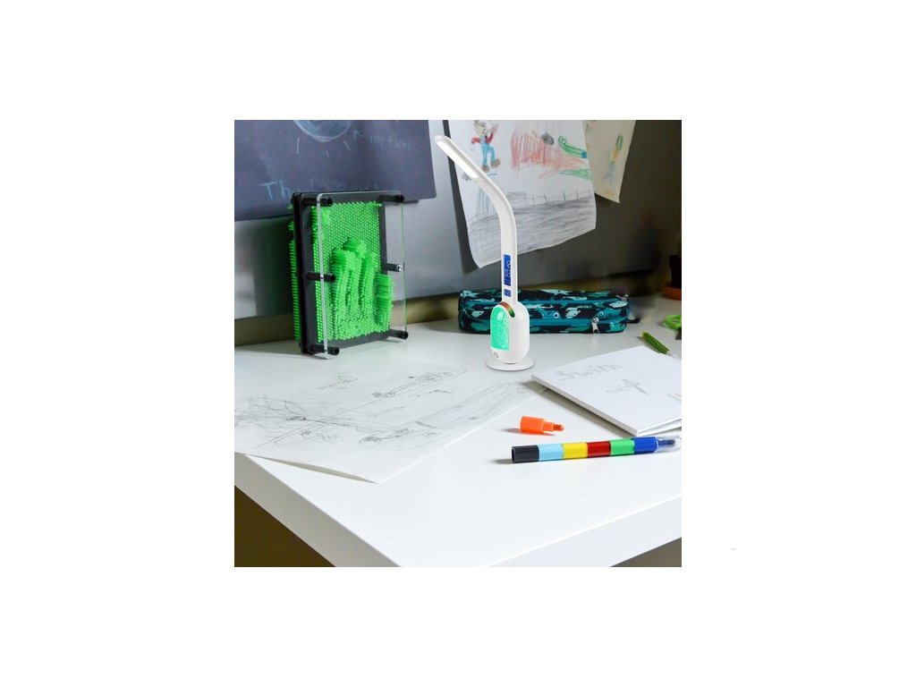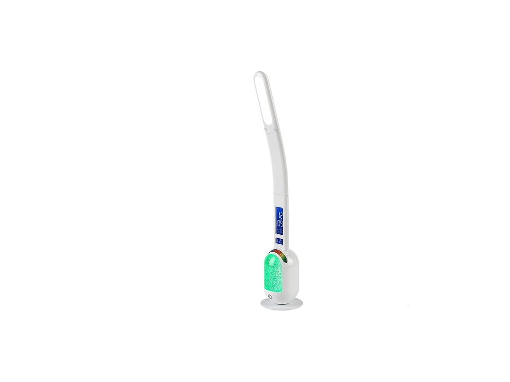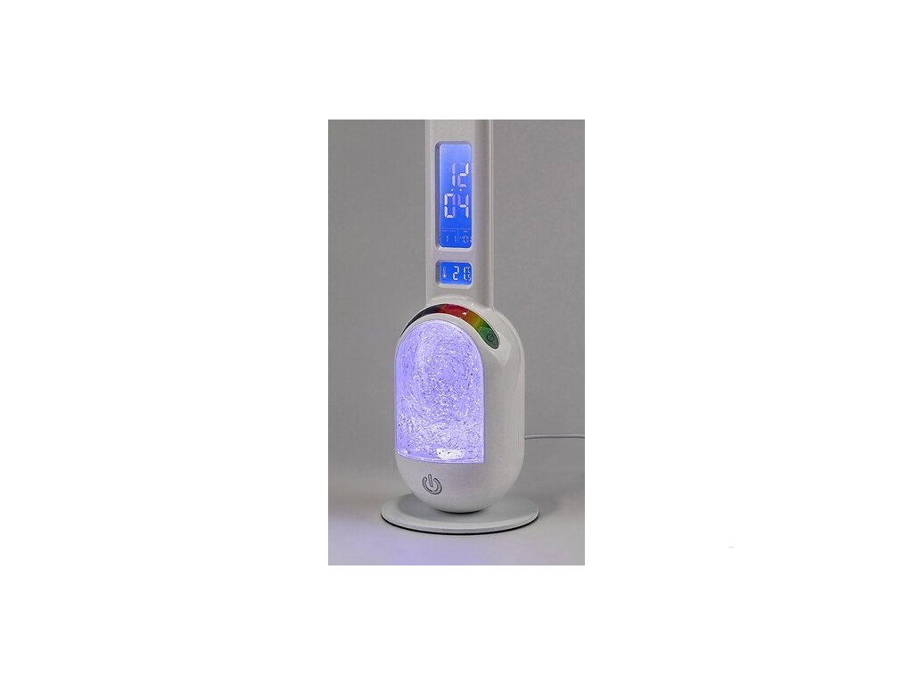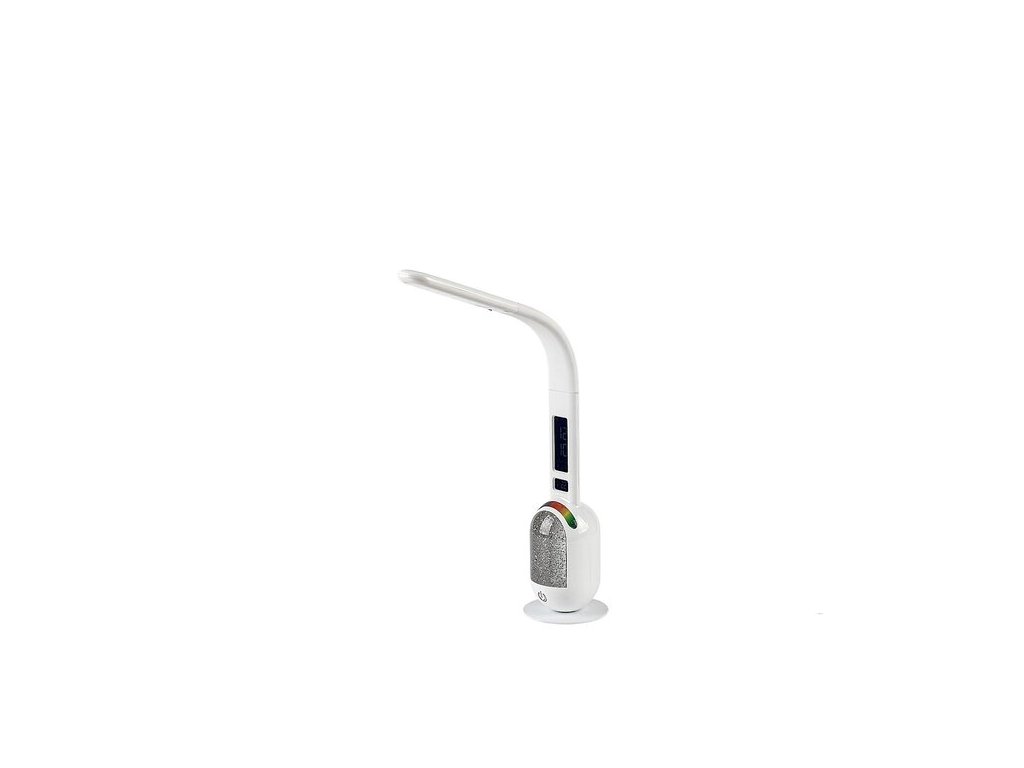 Stolní lampu Rabalux Figen doporučujeme těm, kteří ocení dekorativní vzhled i širokou funkčnost. Tato moderní lampa je celá vyrobena z plastu v elegantní bílé barvě, doplněna dekorativní základnou ve tvaru disku. Rameno lampy je tenké a ploché, se dvěma displeji ve spodní části. Kulatá část konstrukce, která se dotýká dekorativní základny, je naplněna tekutým slídovým materiálem – tato část je samostatně spínatelná. Lampa umožňuje RGB osvětlení, díky čemuž může slídová výplň svítit různými barvami. Designová lampa má vestavěný LED světelný zdroj vyzařující přirozené bílé světlo a obsahuje také baterii. Intenzitu osvětlení lze nastavit pomocí dotykového spínače ve spodní části lampy. Stolní lampa je ideální volbou do obývacího pokoje, ložnice nebo pracovny.