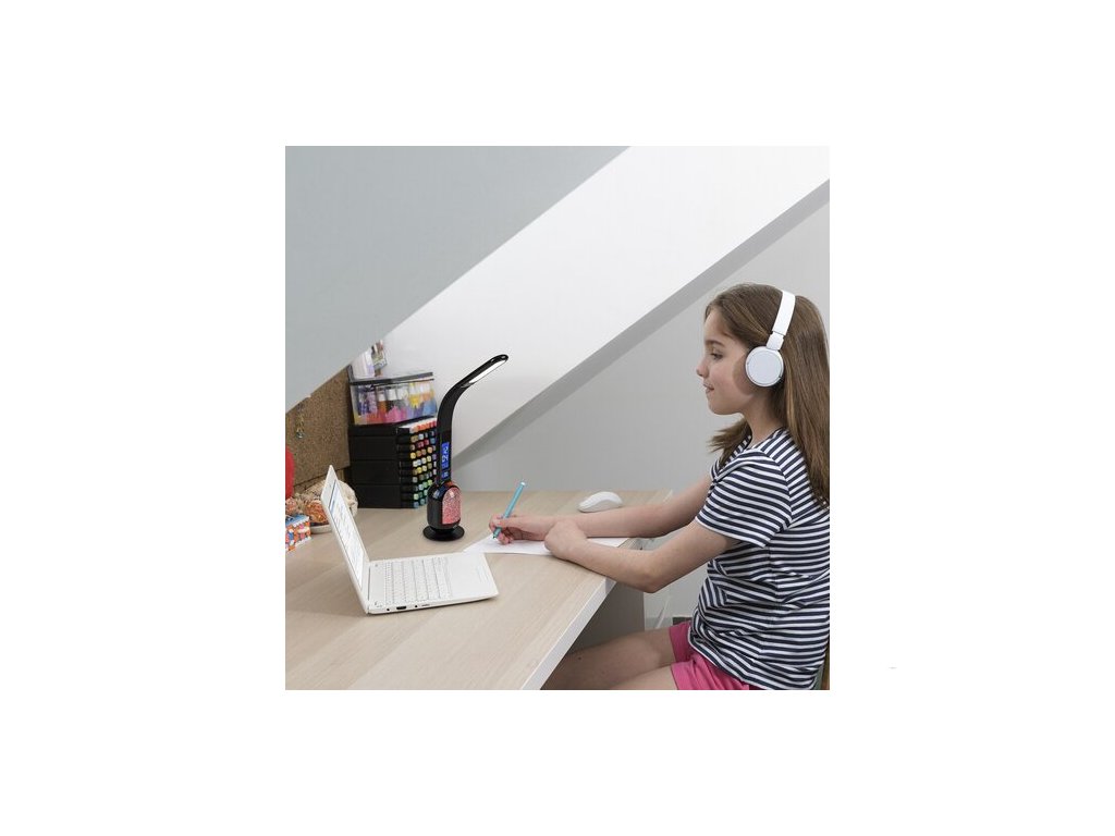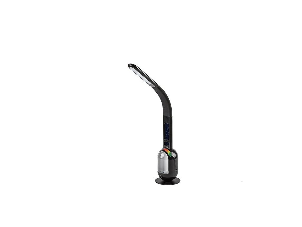 Stolní lampu Rabalux Figen doporučujeme těm, kteří ocení dekorativní vzhled i rozsáhlou funkčnost. Tato moderní lampa je vyrobena z plastu, s černou konstrukcí a bílým stínítkem, které doplňuje dekorativní základna ve tvaru disku. Rameno lampy je tenké a ploché, se dvěma displeji ve spodní části. Kulatá část konstrukce, která se dotýká dekorativní základny, je naplněna tekutým slídovým materiálem – tato část je samostatně spínatelná. Lampa umožňuje RGB osvětlení, díky čemuž může slídová výplň svítit různými barvami. Designová lampa má vestavěný LED světelný zdroj vyzařující přirozené bílé světlo a obsahuje také baterii. Intenzitu osvětlení lze nastavit pomocí dotykového spínače ve spodní části lampy. Stolní lampa je ideální volbou do obývacího pokoje, ložnice nebo pracovny.