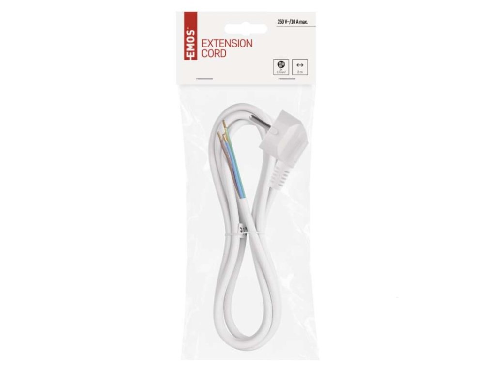 barva: bílá|délka: 2 m|prodejní obal: 1 ks, závěs|průřez vodiče: 3× 1,0 mm²|typ: KF-CR2 (HY005-F)|typ izolace: PVC|vodič: H05VV-F 3G|vypínač: neDoplňkové parametry