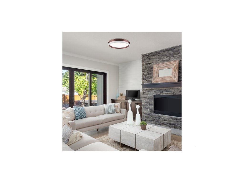 Kulatou stropní lampu Fontana doporučujeme těm, kteří hledají moderní centrální zdroj světla s čistým designem do svého obývacího pokoje a chtějí do pokoje zakomponovat doplňky v teplých tónech. Hnědou kovovou lampu doplňuje matné bílé plastové stínítko. Fontana má zabudovaný LED světelný zdroj energetické třídy G o výkonu 24 W, svítivostí 1100 lumenů se stínítkem, 2600 lumenů bez stínítka a s životností 25000 hodin. Stropní světlo má teplotu barvy 3000 K, což je teplé bílé světlo, které napomáhá vytvářet útulnou domácí atmosféru. Fontána má průměr 390 mm a vzdálenost 70 mm od stropu.
