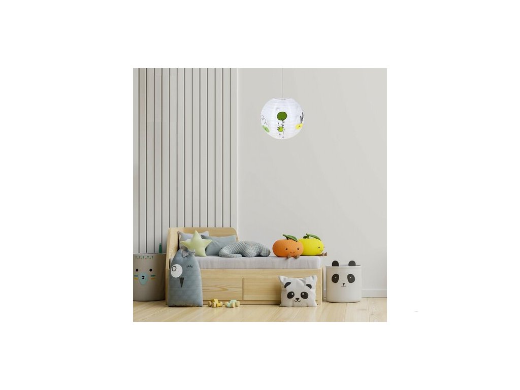 Dětské závěsné svítidlo Rabalux Froggo z papíru je vlastním designovým modelem značky Rabalux. Je ideální pro každého, kdo chce do dětského pokoje vnést veselý a hravý motiv. Svítidlo má zaoblený tvar, je vyrobeno z papíru a zdobeno zábavným motivem žabky a balónků, který zaručeně vykouzlí úsměv na tváři malého obyvatele pokoje. Typické barvy motivů jsou zelená a žlutá, které svou svěžestí a veselostí působí osvěžujícím dojmem. Dětské závěsné svítidlo lze použít s jednou žárovkou o výkonu až 40 W. Pro vytvoření útulné a intimní atmosféry zvolte žárovku s teplým bílým světlem. Dětské závěsné svítidlo se dodává bez objímky a světelného zdroje.