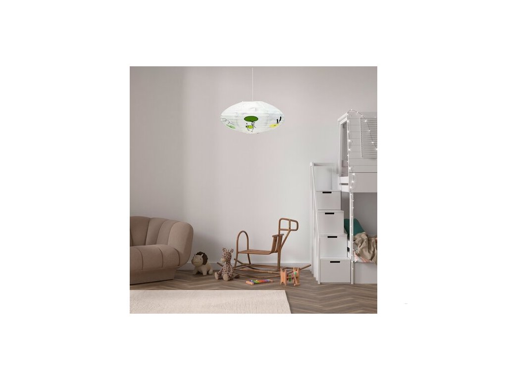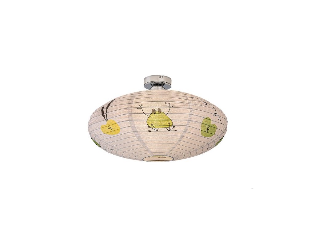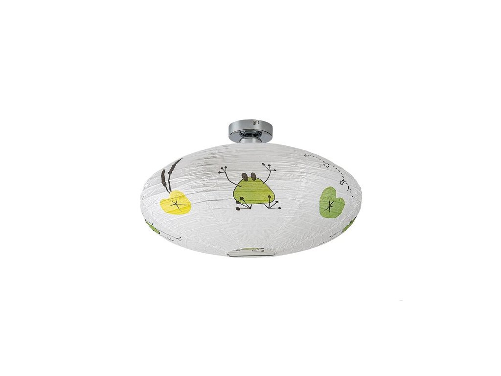 Rabalux Froggo papírové stropní světlo pro děti je samostatně navržený model od Rabalux. Je ideální pro každého, kdo chce do dětského pokoje přidat veselý, zábavný motiv. Lampa má zploštělý, zaoblený tvar, je vyrobena z papíru a je dekorována zábavným motivem žáby a balónu, který zaručeně přinese úsměv na tvář obyvateli místnosti. Typické barvy motivů jsou zelená a žlutá, které svou svěžestí a veselostí působí osvěžujícím dojmem. Dětská lampa může být použita s jednou žárovkou s výkonem až 40 W. Pro útulnou, intimní atmosféru zvolte žárovku, která vyzařuje teplé bílé světlo. Světlo do dětského pokoje je dodáváno bez patice a světelného zdroje.
