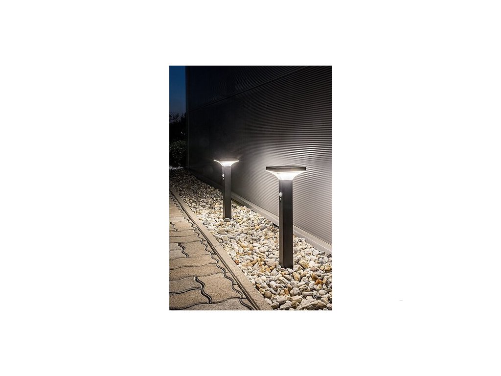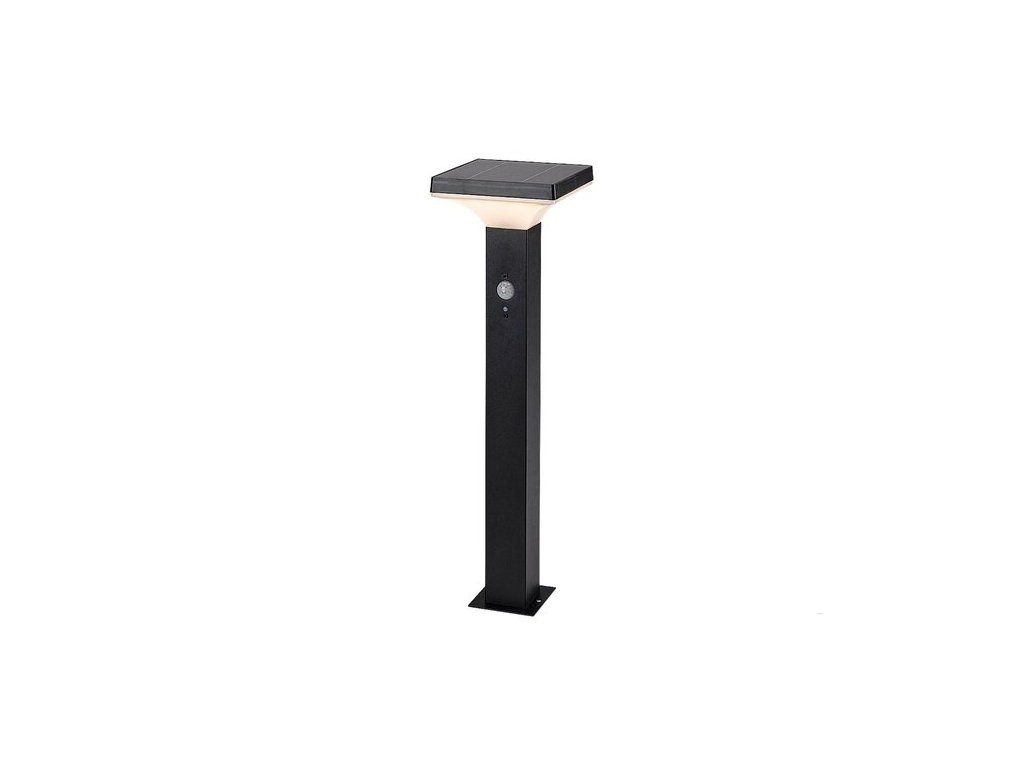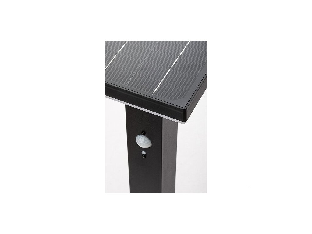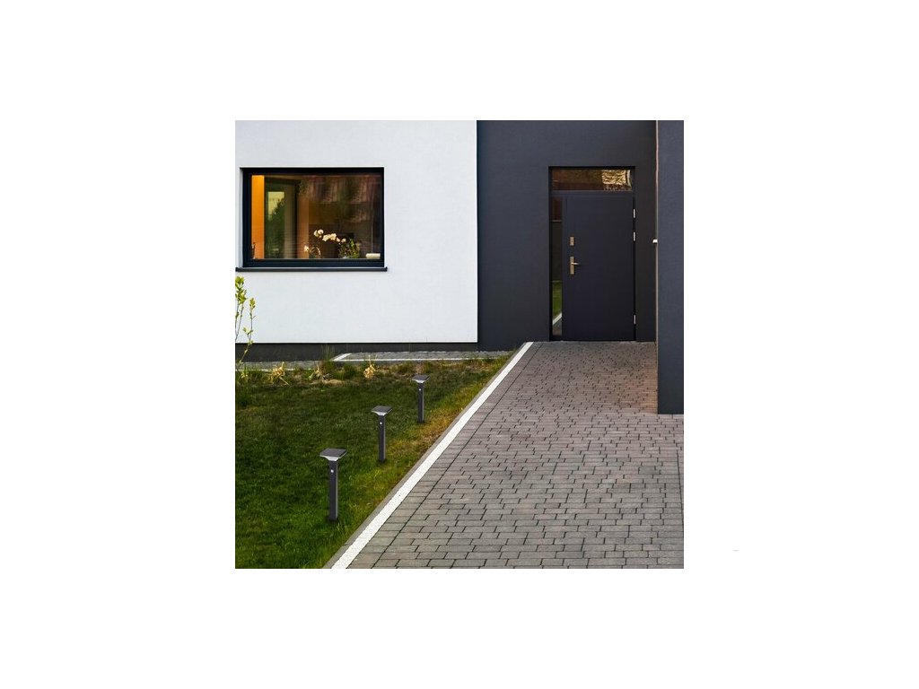 Solární venkovní stojací lampa Geleen v moderním stylu se senzorem pohybu a čtyřmi volitelnými provozními režimy je skvělou volbou pro vaši terasu nebo zahradu. Černý model z nerezavějící oceli je doplněn bílým plastovým stínítkem. Geleen je doplněn malou hranatou ozdobnou základnou a trychtýřovitou hlavou lampy, která se směrem nahoru rozšiřuje. Lampa má zabudovaný LED světelný zdroj, s výkonem 4 W, svítivostí 400 lumenů se stínítkem a 600 lumenů bez stínítka, a životností 10 000 hodin. Světelný zdroj s teplým bílým světlem má barevnou teplotu 3000 K. Solární lampa má šířku 145 mm, výšku 500 mm a instalační průměr 80 mm. Pohybový senzor rozpozná pohyb ze vzdálenosti 6-8 metrů při úhlu záběru 110°. Baterie má napětí 3,7 V a kapacitu 2200 mAh. Čas nabíjení je 3- 4 hodiny a provozní doba je 10-12 hodin. Krytí IP44 lampy zaručuje ochranu tohoto modelu proti vniknutí pevných předmětů větších než 1 mm a proti stříkající vodě z jakéhokoli směru. Ideální rozsah pracovních teplot –je –20–40 °C.