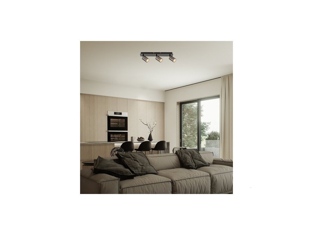 Stropní bodové svítidlo Rabalux Gerhard se třemi žárovkami je doporučeno těm, kteří preferují funkčnost a minimalistický styl. Tento model s válcovitými světelnými prvky je kompletně vyroben z kovu, což mu díky šedavě kovovému lesku dodává elegantní vzhled. Svítidlo lze připevnit ke stropu pomocí podlouhlé obdélníkové dekorativní základny. Světelné prvky jsou přímo připojeny k dekorativní základně a lze je otáčet, takže jejich světlo lze vždy nasměrovat podle aktuálních potřeb místnosti. Bodové svítidlo lze použít se třemi žárovkami, každou o výkonu až 15 W. Typ objímky je GU10. V závislosti na vašem vkusu si můžete vybrat světelné zdroje vyzařující teplé nebo přirozené bílé světlo. Stropní bodové svítidlo je ideální volbou do obývacího pokoje, ložnice nebo pracovny. Tento model se dodává bez světelných zdrojů.